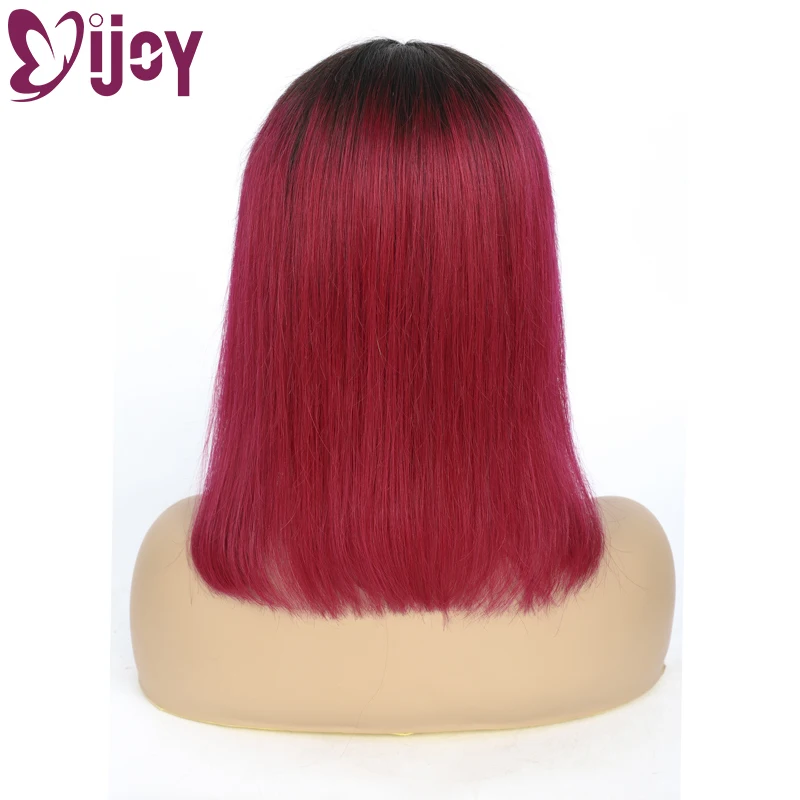Омбре 99Jбордовые короткие прямые человеческие волосы боб парики с ...