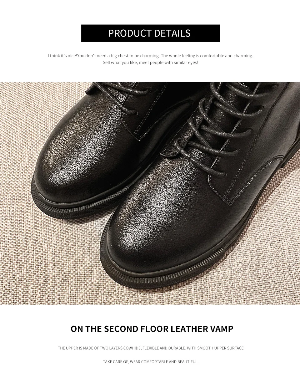 Зимние ботинки; Женские полусапожки из натуральной кожи на шнуровке; Цвет Черный; Коллекция 2020 года; Модные теплые Нескользящие ботильоны для женщин; 043266