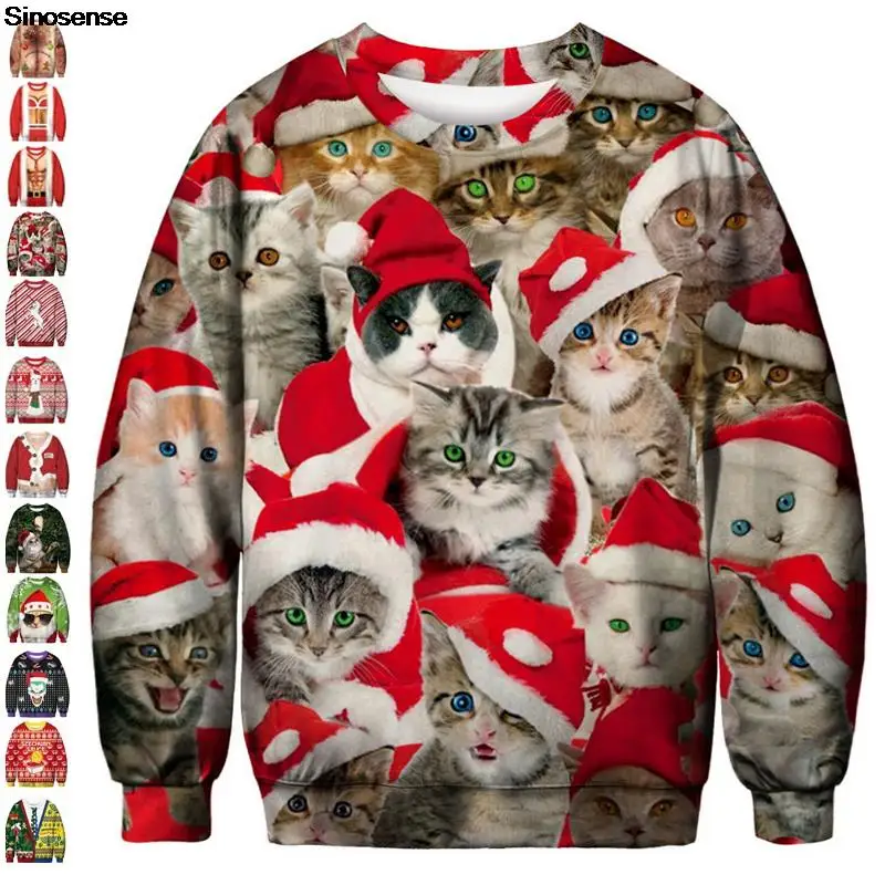 Свитер мужскойженский Рождественский, пуловер с 3D рисунком кота, уродливый свитер для новогодних праздников, свитшот для пар, смешные Джемперы для Рождества
