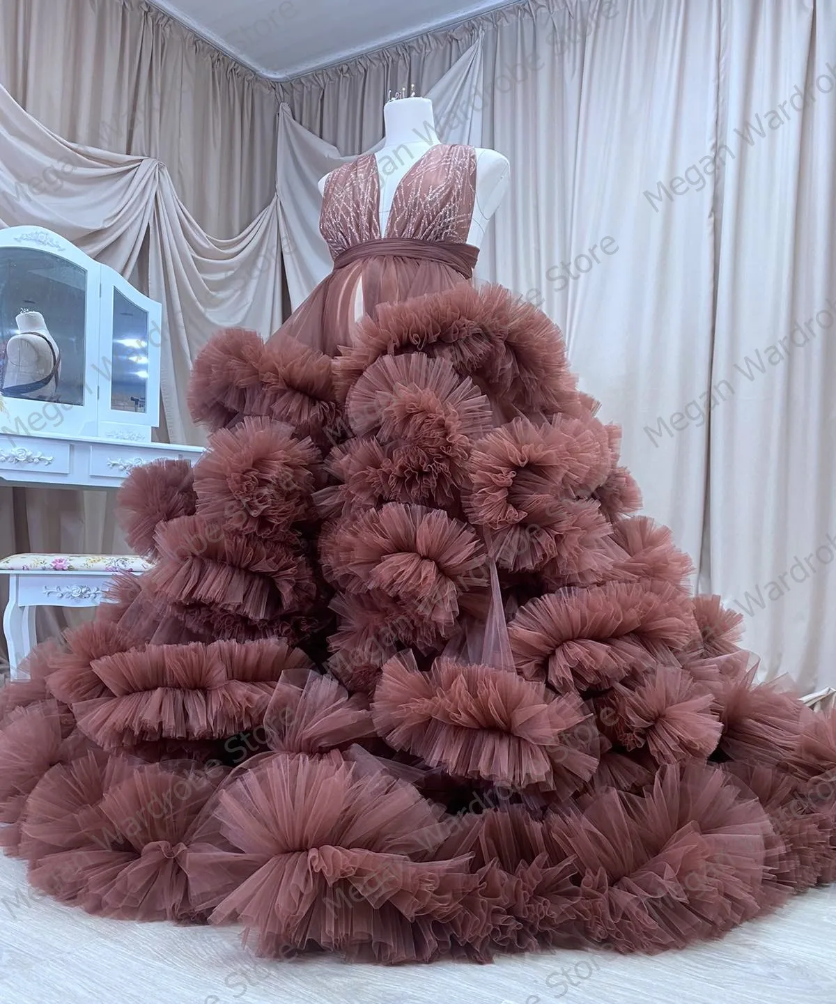 Пышные оборки для беременных фатиновые халаты с V-образным вырезом без рукавов Большие размеры Платья для беременных фотосессии женское реальное изображение