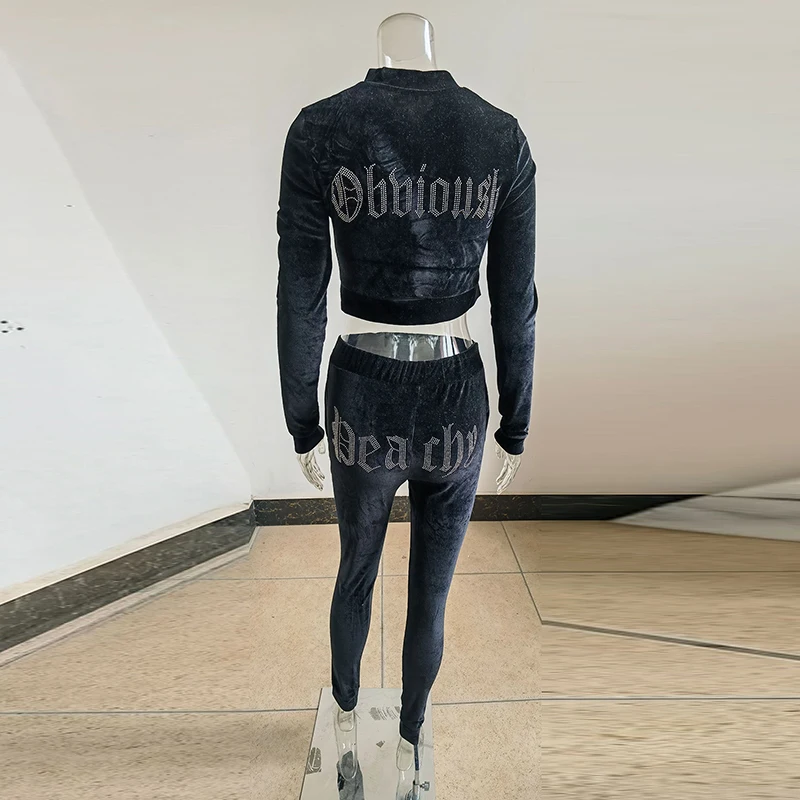 Женский комплект из 2 предметов, стразы с надписями, тонкие бархатн...