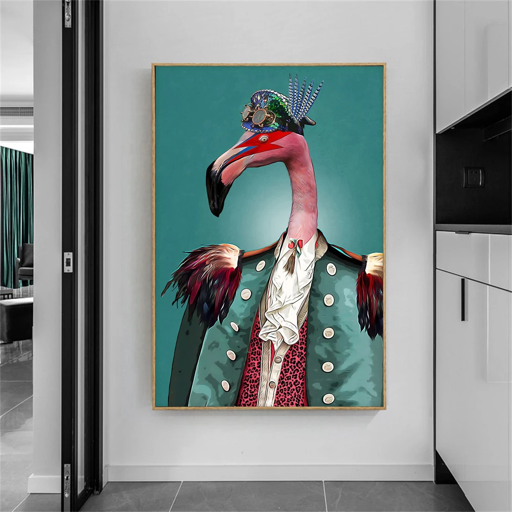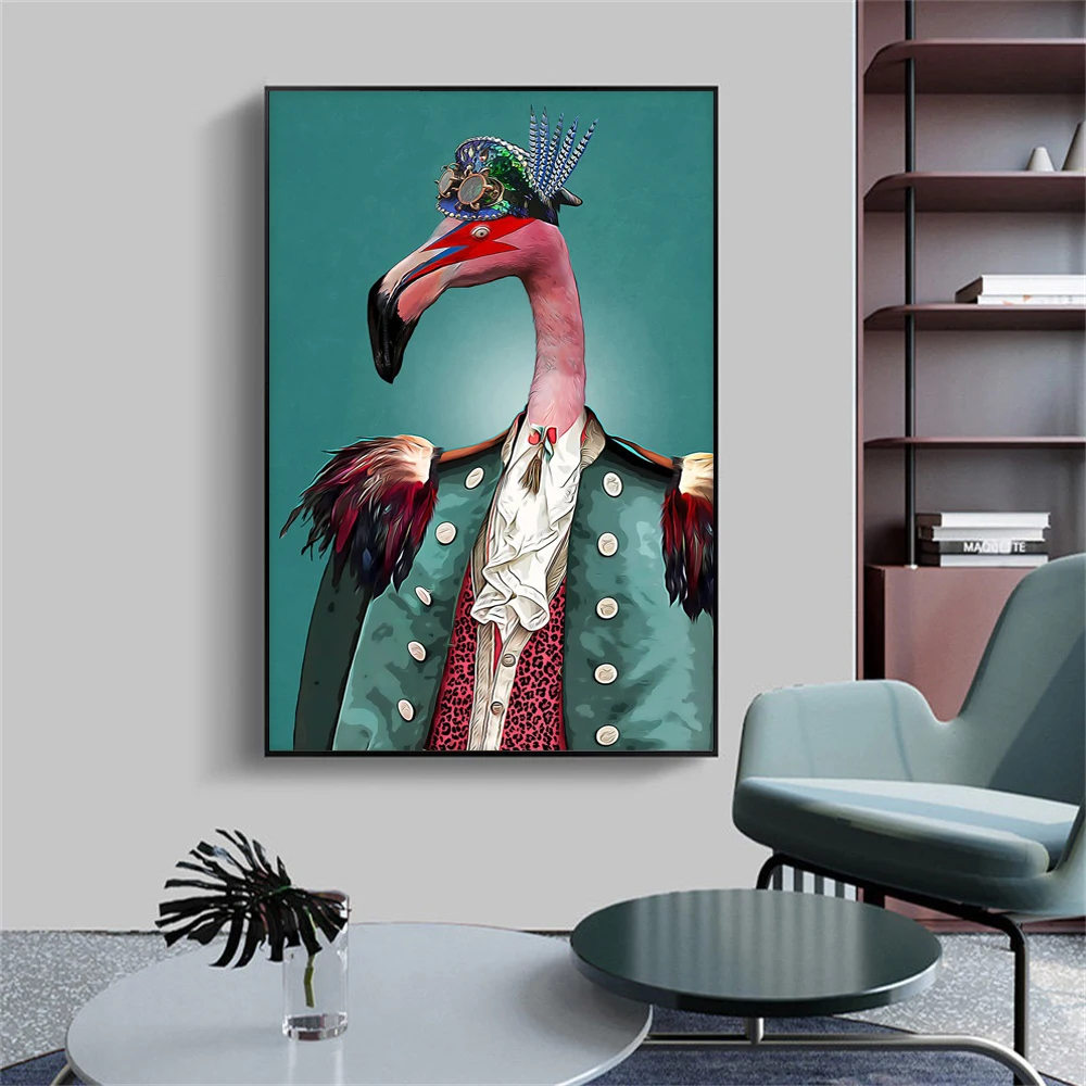 Постеры адмирал фламинго, настенная Картина на холсте, картина на стену, смешное животное с формой, картина для гостиной, домашний декор