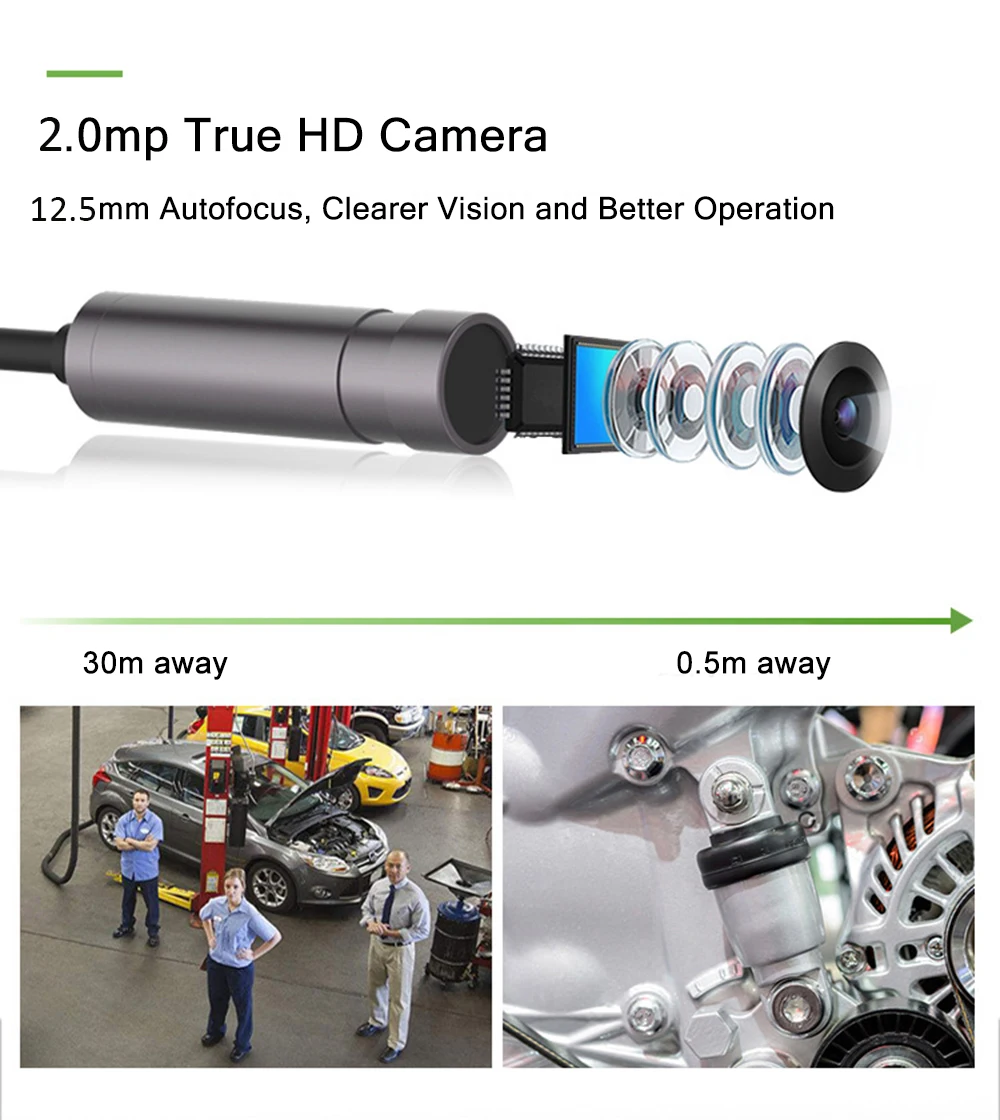 Монитор:Тип экрана: 5,0 дюймов Размер Цвет экранРазрешение: 1920*1080 пикселей (QVGA)Вращение: 360 °Разрешение камеры: 1920*1080Разрешение фото: 1920*1080Разрешение записи: 1280*720Язык: английский. Китайский, немецкий, французский, испанский, итальянский, русский, японскийПорт: Порт удаленного подключения, USB, слот для tf-карты32G TF SD картаКамера:Диаметр: 7,6 мм/5,5 мм/3,9 мм/8 мм/12,5 мм опциональноДиаметр вала: 7 мм/5 ммДлина вала: 100 см/300 см/500 см (полу-жесткий кабель)Разрешение: 2,0 мегапикселейУгол обзора: 70 °Глубина поля: 30 мм-60 ммСветильник источник света: 6 Регулируемых светодиодов высокой интенсивностиПрочее:Светодиодный светильник вспышки: 1 Вт CREE светодиодныйРабочая температура: от 32 до 113 °F (от 0 до 45 °C)Мощность: 3500 мАч литиевая батарея (в комплекте)Срок службы батареи: 4-5 часовСертификат: CE FCC ROHS