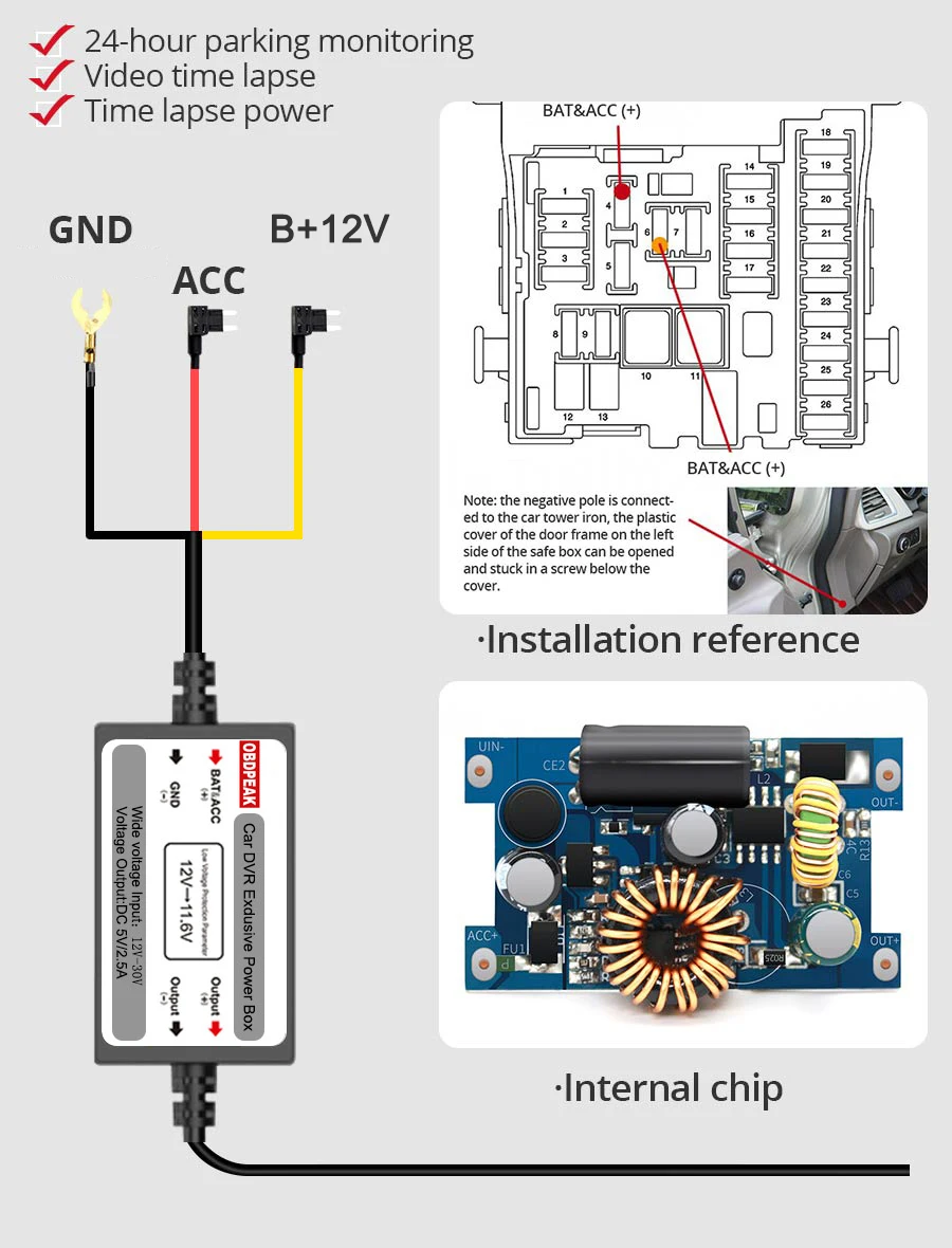 О: 1. Предлагаем найти информацию из Интернета, чтобы найти свой автомобильный предохранитель, Откройте коробку с помощью пластикового инструмента2. Используйте электро-зонд, найдите мощность ACC f и постоянную мощность f, мы рекомендуем использовать лампы для чтения, фары, задние лампы, поворотники, мощность windows f используется для обеспечения постоянной мощности (если они имеют постоянную мощность f)3. Мощность ACC: когда вы подключите ключ автомобиля, затем поверните его к ACC, мощность будет работать. Если вы Замочите ключ автомобиля или отключите его, питание будет выключено. Подключите красный провод (ACC) с предохранителем питания ACC.4. Постоянная мощность: Подключите или отключите ключ автомобиля, питание бесперебойное. Подключите желтый провод (B) с предохранителем постоянной мощности. Для некоторых автомобилей, вы должны отрезать провода, переделать их, а затем подключить их к автомобильным предохранителям. Затем подключите предохранитель к тому месту, где он находится5. GND провод (черный) для подключения его со стальной пластиной или винтом