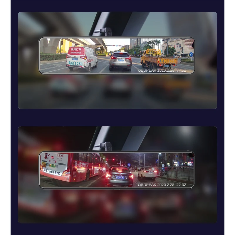 Оснащен задней камерой записи 1080P, вы можете одновременно записывать фронтальные и задние камеры и одновременно просматривать изображения обеих камер на зеркале.