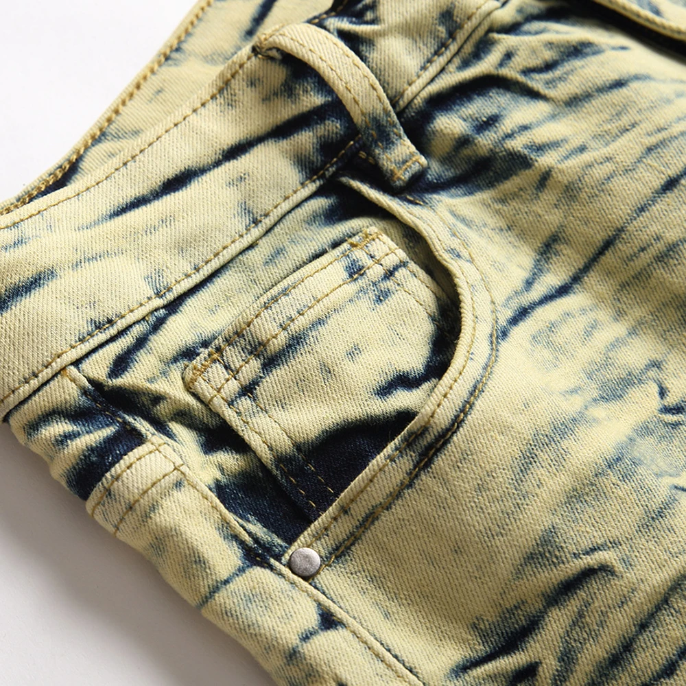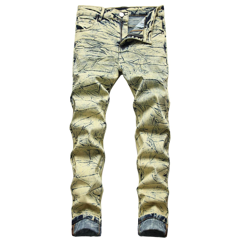Мужские джинсы с принтом тай-дай S2K, Модные Узкие прямые брюки