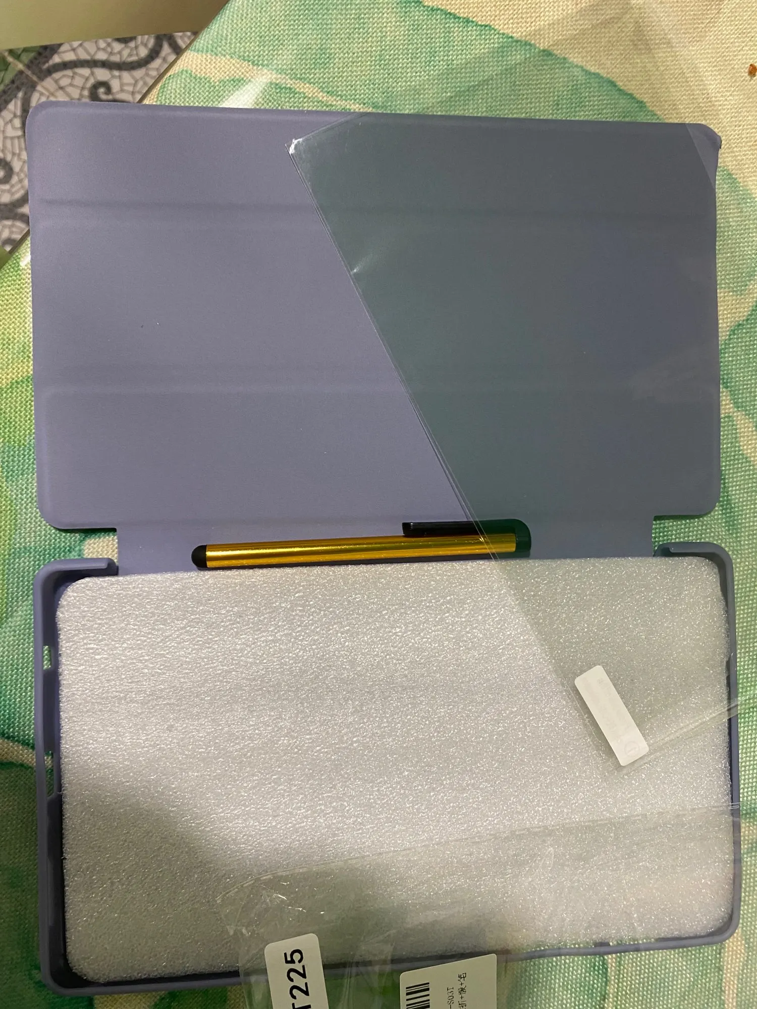 Пришло быстро, упаковано хорошо и аккуратно, в подарок положил пленку на экран и стилус, сам чеол силиконовый, цвет сиреневый, единственное на фото он выглядел чуть бледнее, а пришел прям темный, но зато не маркий. Заказом довольна. Продавец хороший,
