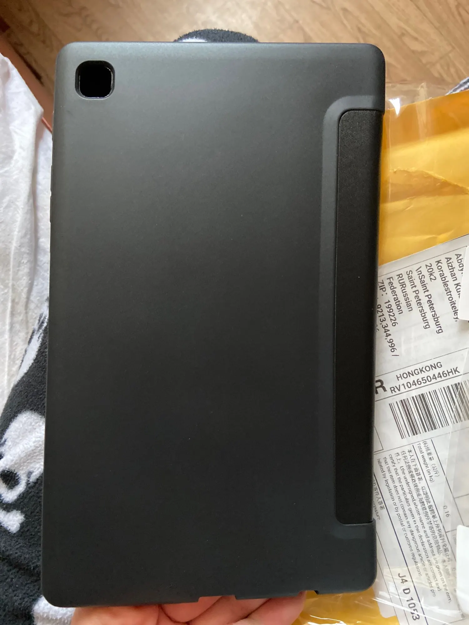 Заказала 30.10 прибыл в Санкт-Петербург 19.11. Чехол превзошёл все мои ожидания. Полностью соответствует описанию, отличного качества, все прорези для кнопок и динамик совпадают. Заказывала на Samsung tabA7 Lite 2021 года. Планшет сразу ставится на блок после закрытия крышки, так как на магните. Определённо советую к заказу.