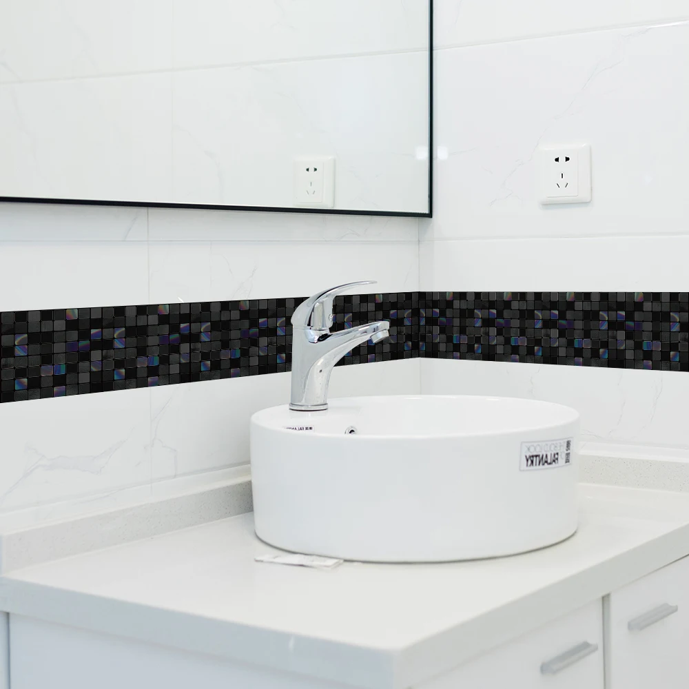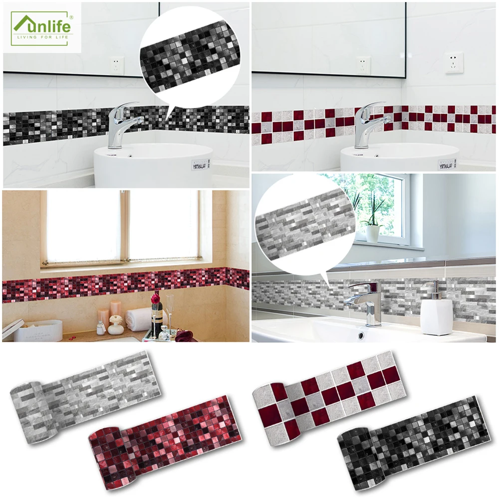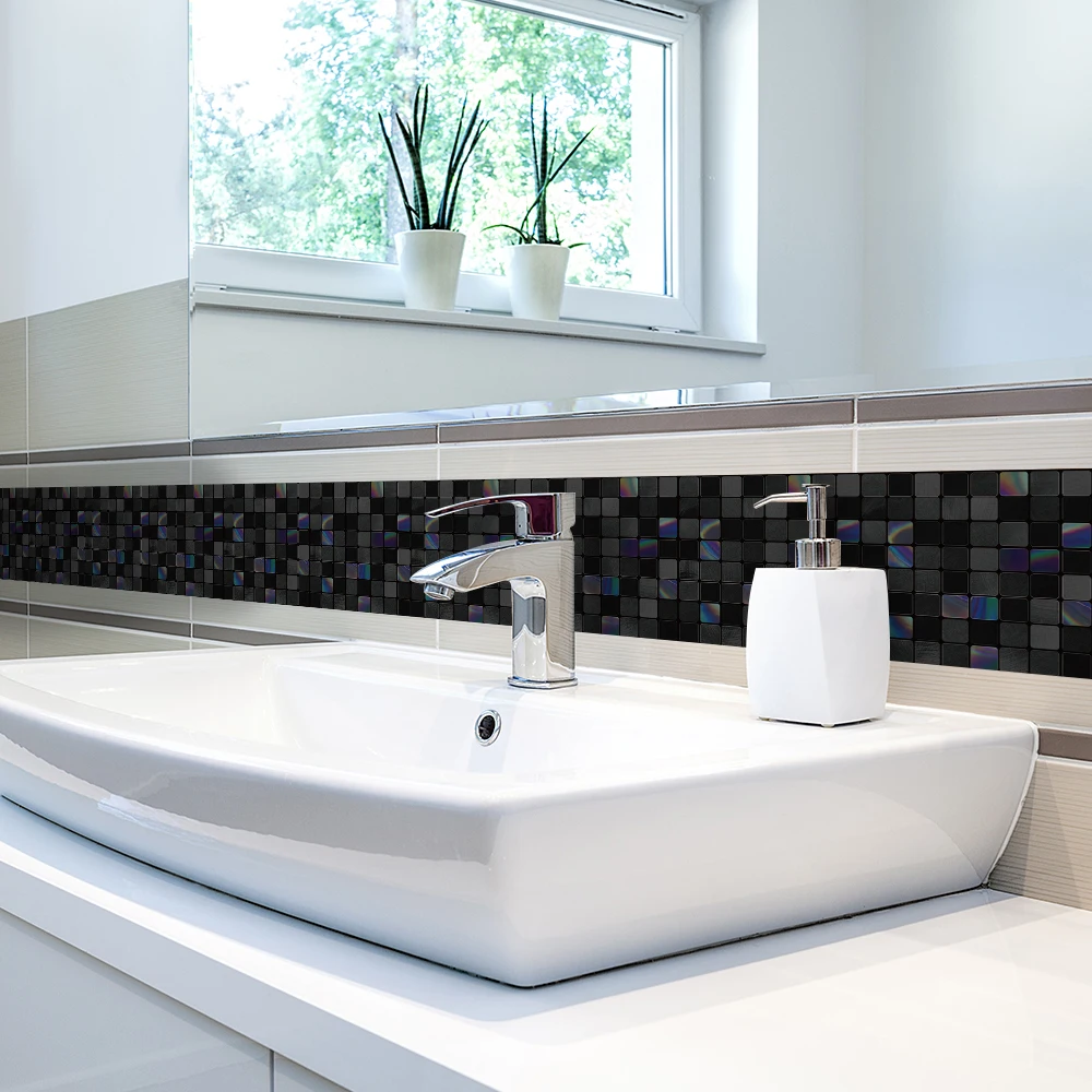 FunlifeЧерная мозаичная Настенная Наклейка на стену, наклейки для плитки, водостойкая самоклеящаяся пленка, домашний декор, кухня, ванная комната