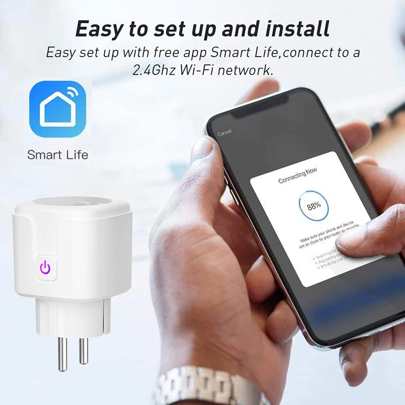 С помощью смартфона или планшета удаленно Управляйте смарт-вилкой wifi с помощью бесплатного приложения smart Life или TuyaSmart из любого места в любое время. Легко управлять бытовой техникой.