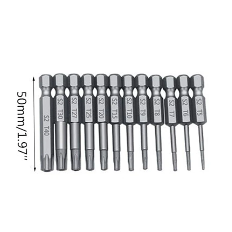 12 шт. размер комплекта: 50 ммT5, T6, T7, T8, T9, T10, T15, T20, T25, T27, T30, T40 каждыйНабор из 12 штук 50 мм-105 гМатериал изделия: легированная сталь S2Обработка поверхности продукта: пескоструйная обработкаУпаковка продукта: OPP ziplock Пакет посылка12-1 предмет 50mm-7*7*1,5 см