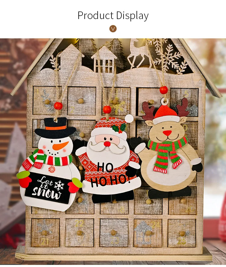 Деревянная подвеска для украшения новогодней елки в виде Санта-Клауса, оленя, снеговика