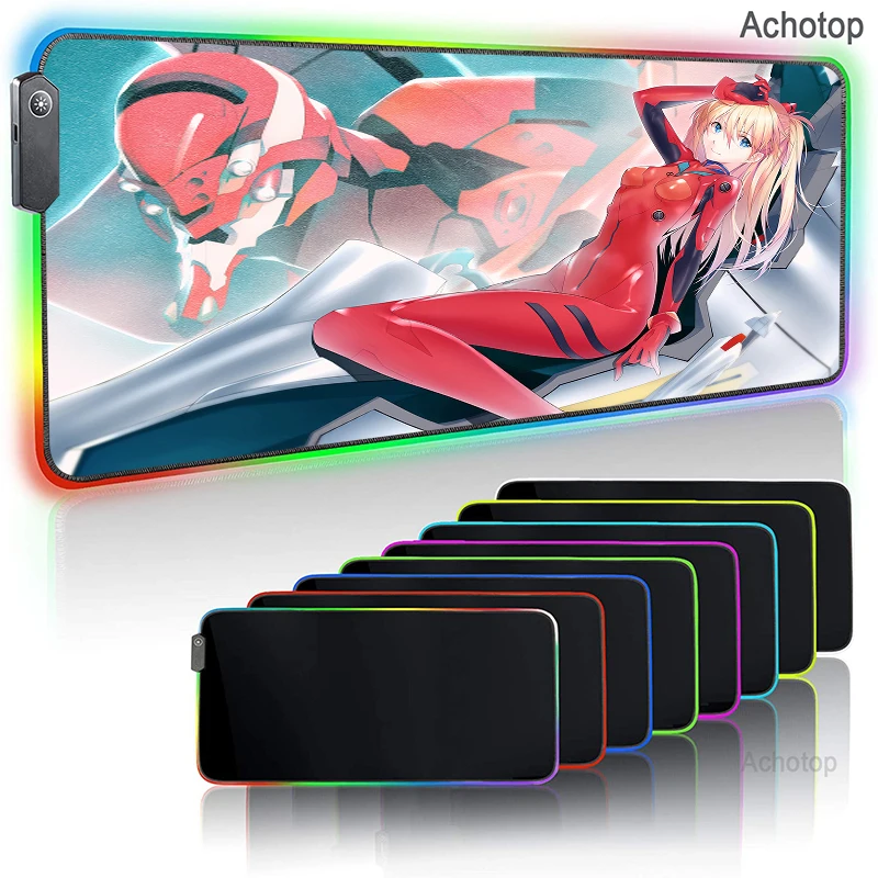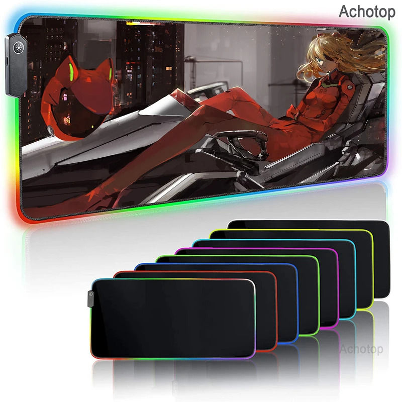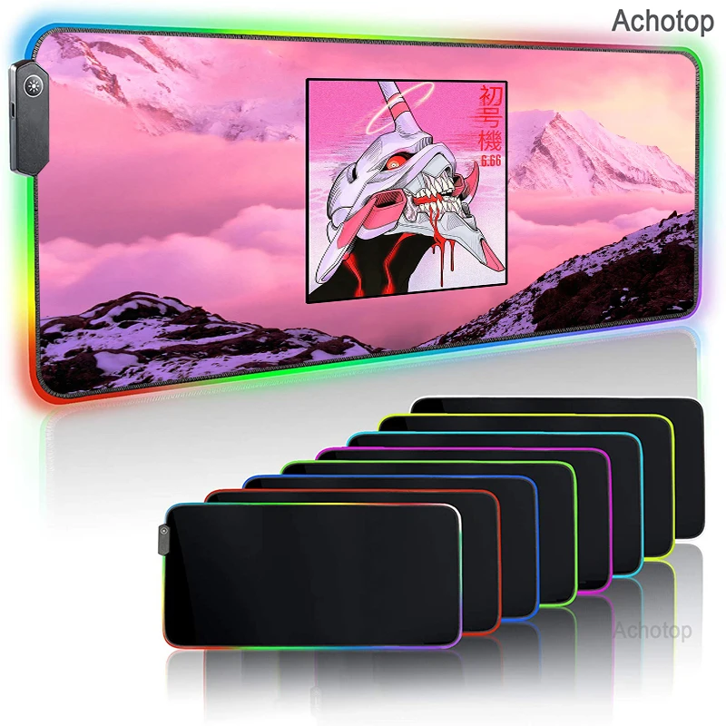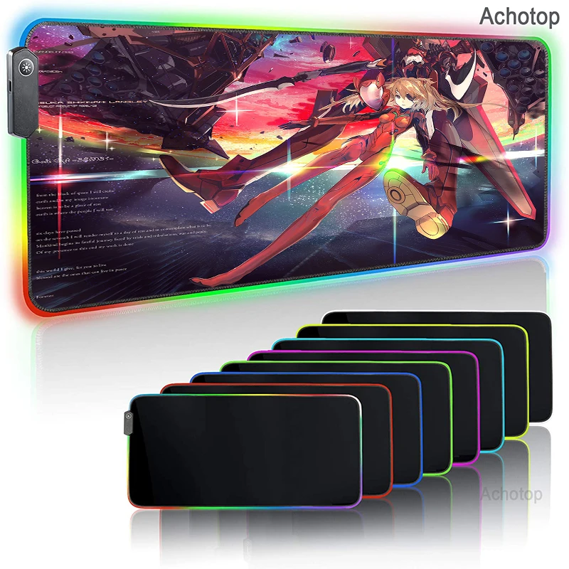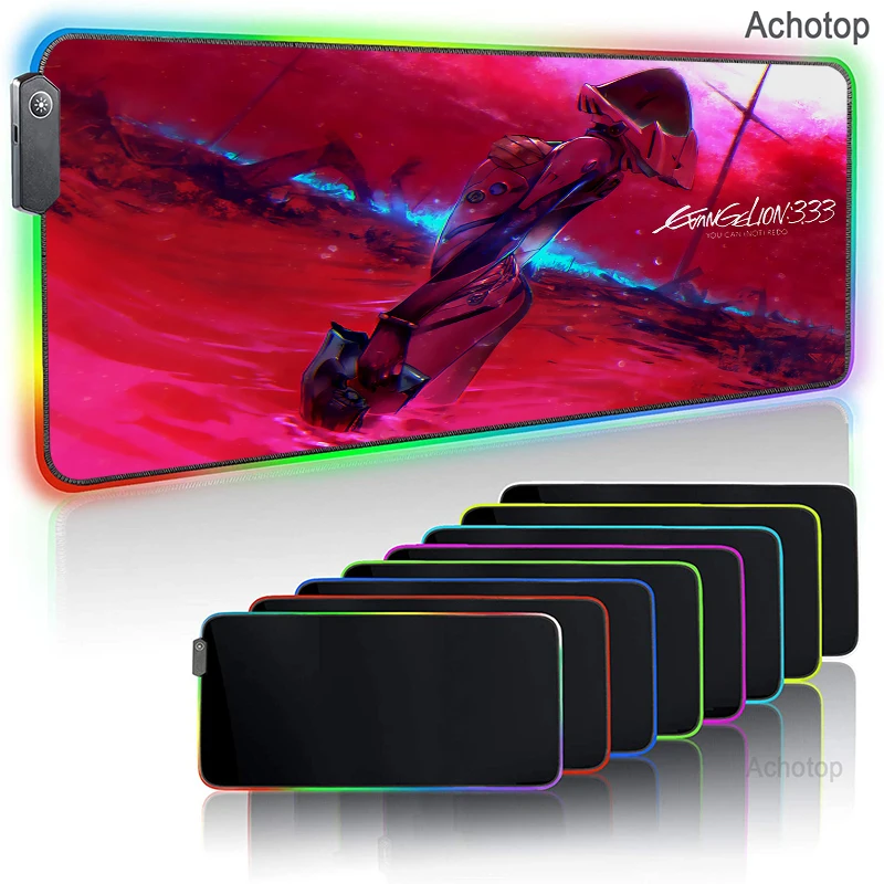 Коврик для мыши со светодиодный светильник кой Евангелион, RGB-подсветка, покрытие для клавиатуры, коврик для мыши с цветной поверхностью, водонепроницаемый, разные размеры, для ПК, для геймеров, XXL