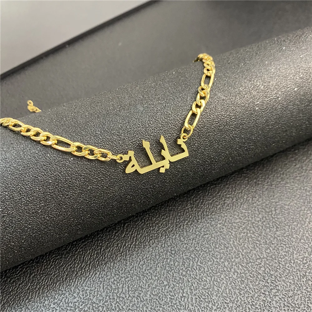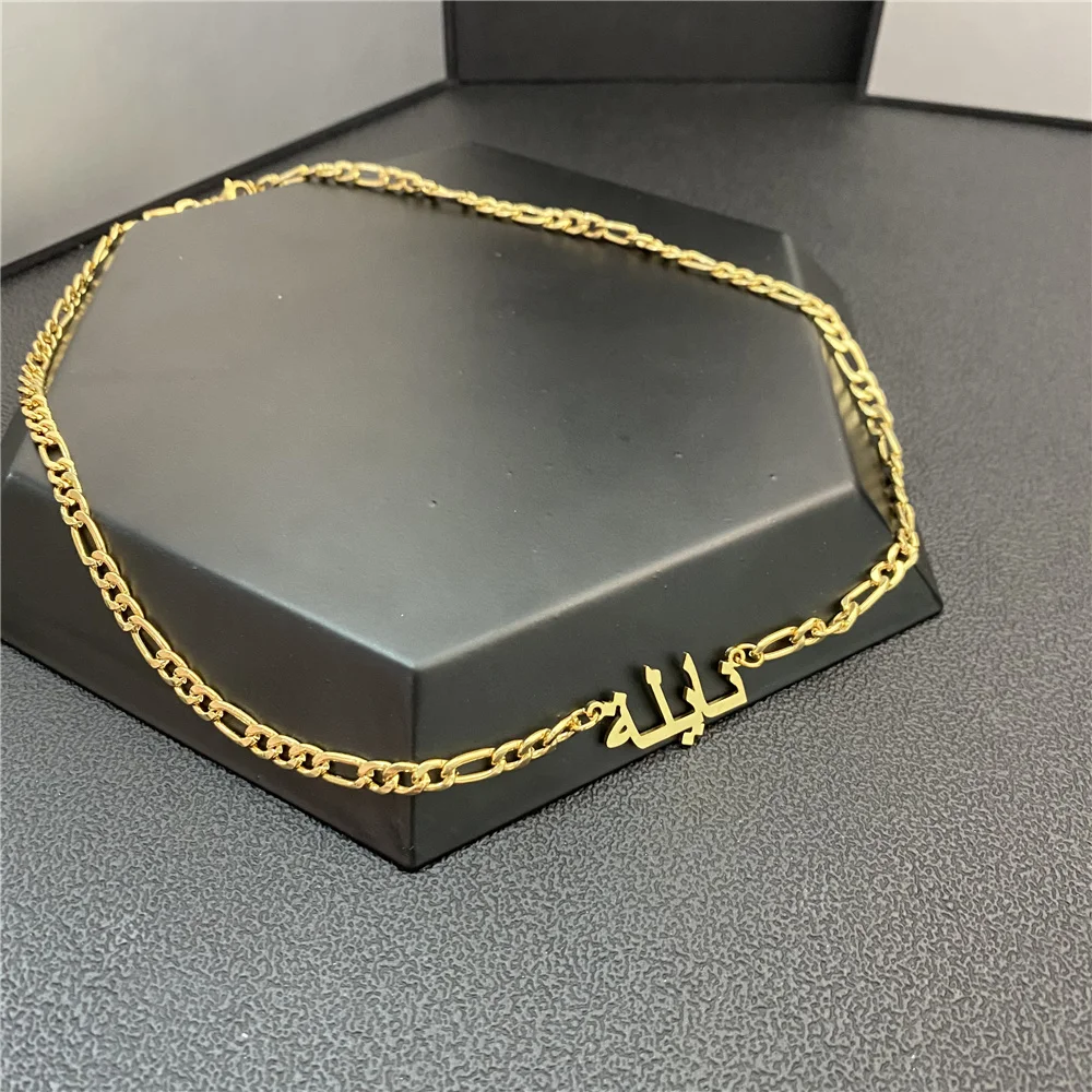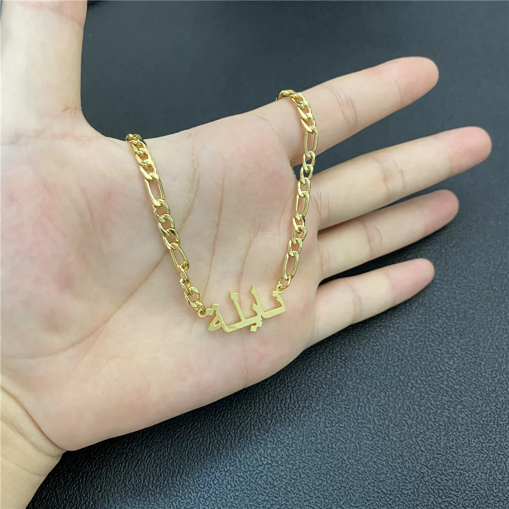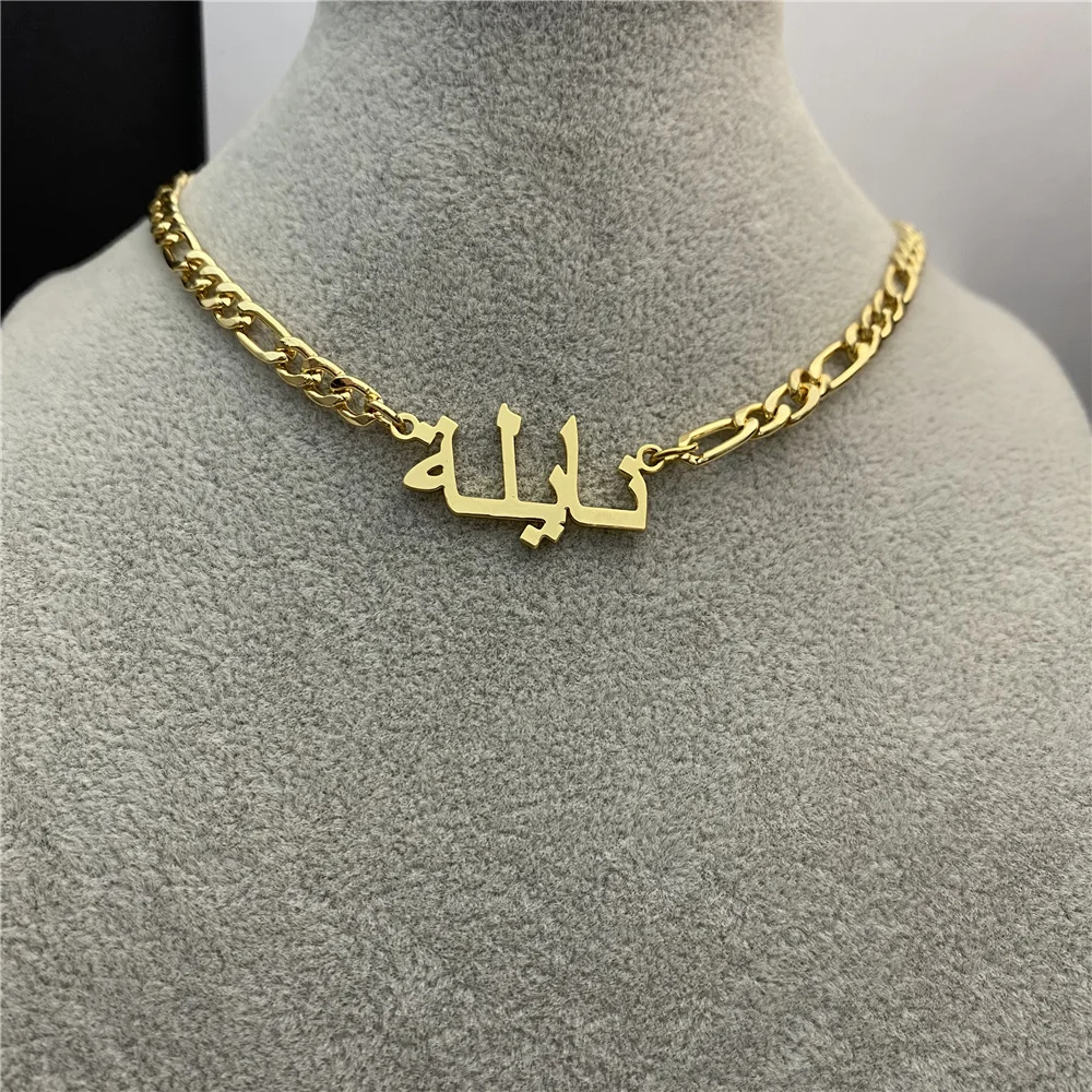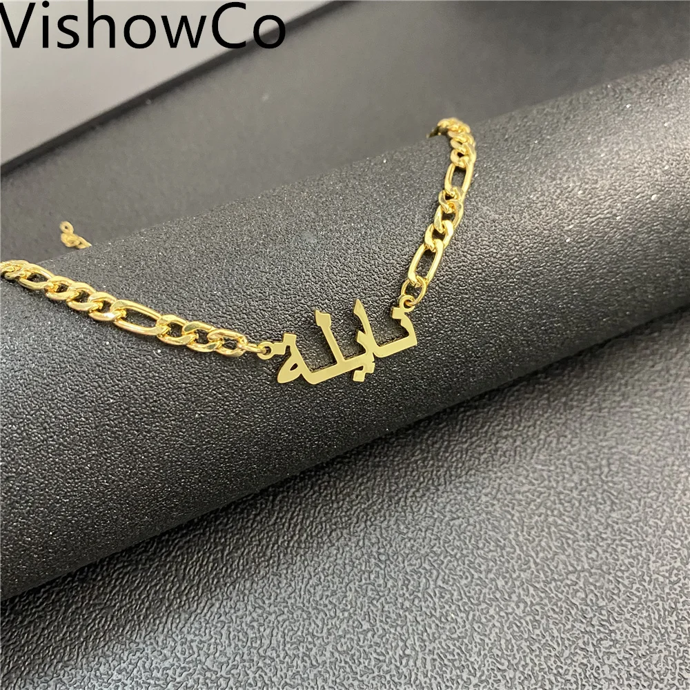 Ожерелье с именем VishowCo на заказ, цепочка из нержавеющей стали Фигаро, персонализированное арабское ожерелье с подвеской, золотой чокер для женщин, подарок