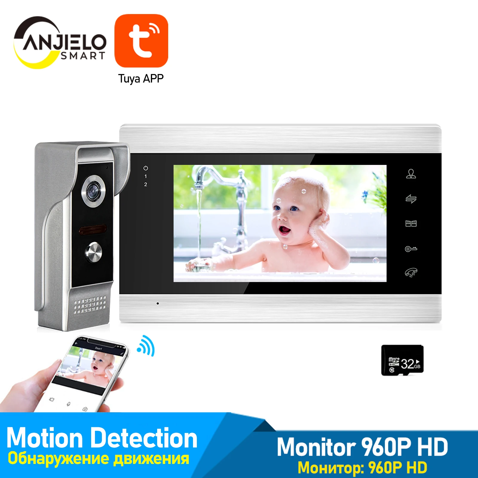 Wi-Fi Tuya App 7-дюймовый видеодомофон, система связи с проводным дверным звонком, камерой, дистанционным управлением, разблокировкой, записью, датчиком движения