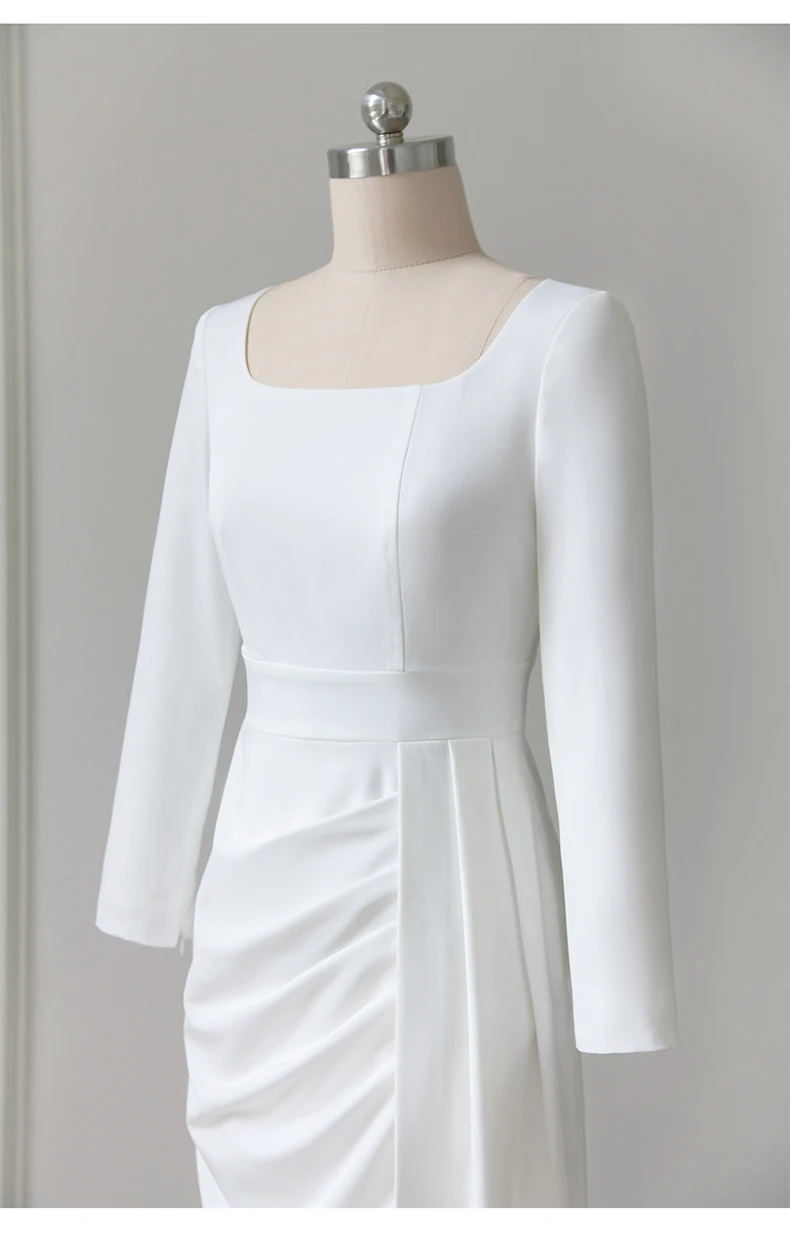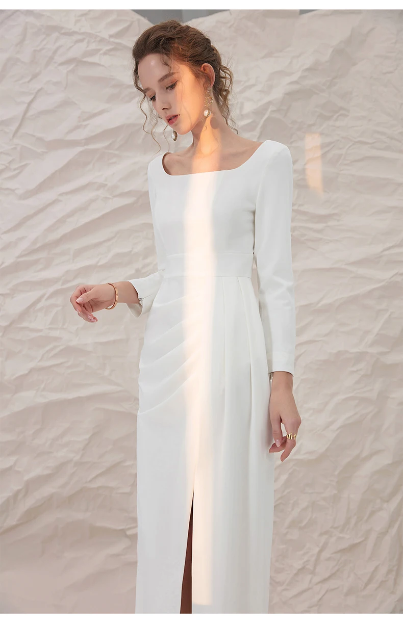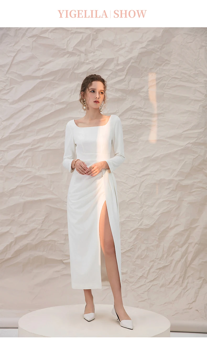 Модное женское осеннее белое длинное платье YIGELILA, платье с длинным рукавом, однотонное прямое платье в стиле ампир, 66821