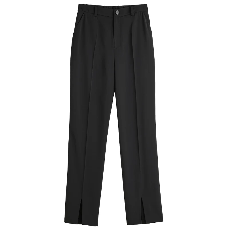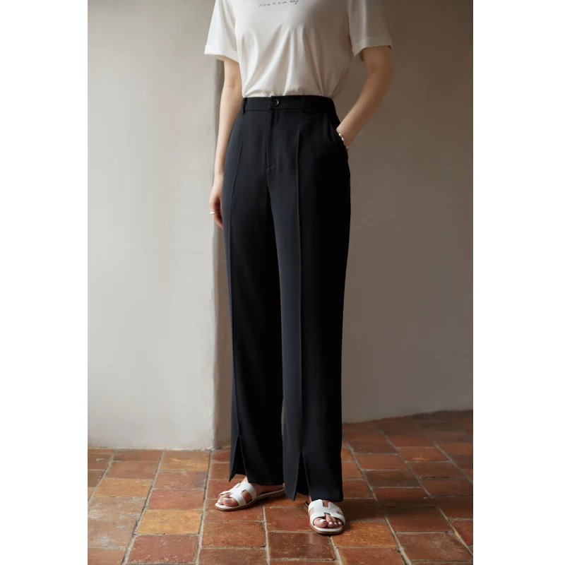DUSHU офисные женские черные брюки с разрезом подол Костюмные брюки с высокой талией черные свободные брюки для женщин