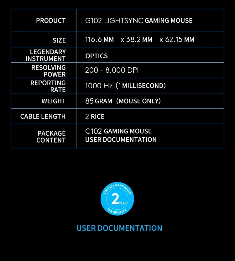 2)G102-это игровая мышь lightsync, которая нуждается в огромной мощности для вождения, чтобы убедиться, что наша мышь имеет достаточный источник питания, если ваш компьютер настольный ПК, пожалуйста, используйте настольную ПК обратную сторону реального USB 3,1 или USB3.0 синий интерфейс; Если ваш компьютер ноутбук, пожалуйста, используйте реальный USB 3,1 или USB3.0 синий интерфейс.