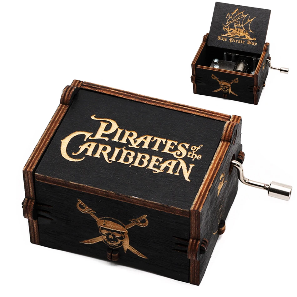 Деревянная музыкальная шкатулка с изображением Джека Воробья, черно...