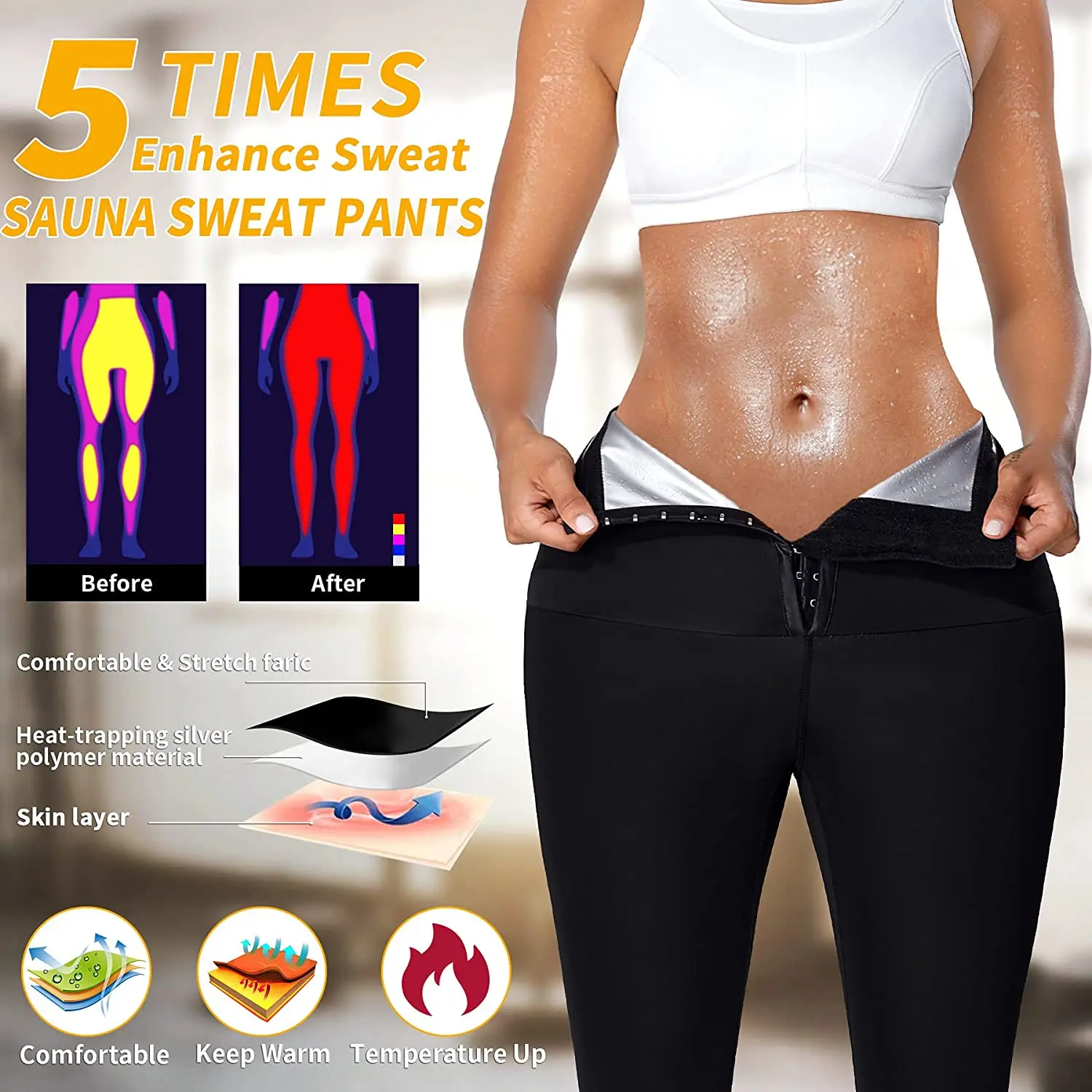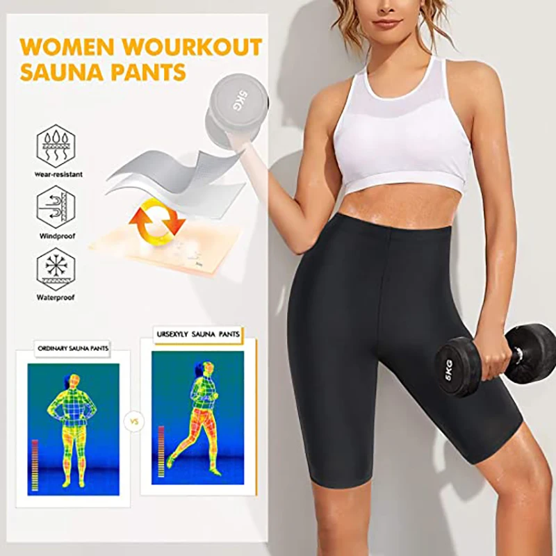 Женские штаны для сауны изготовлены из высококлассной термоусадочной серебристой полимерной ткани с полиэстером и спандексом, которая очень легкая и очень мягкая и не раздражает вашу кожу. Серебряная Тепловая ткань может помочь быстро повысить температуру тела, помочь вам сжечь больше калорий, чтобы повысить потоотделение быстрее, и ускорить эффект упражнений и пролить вес во время ежедневной носки и тренировки.