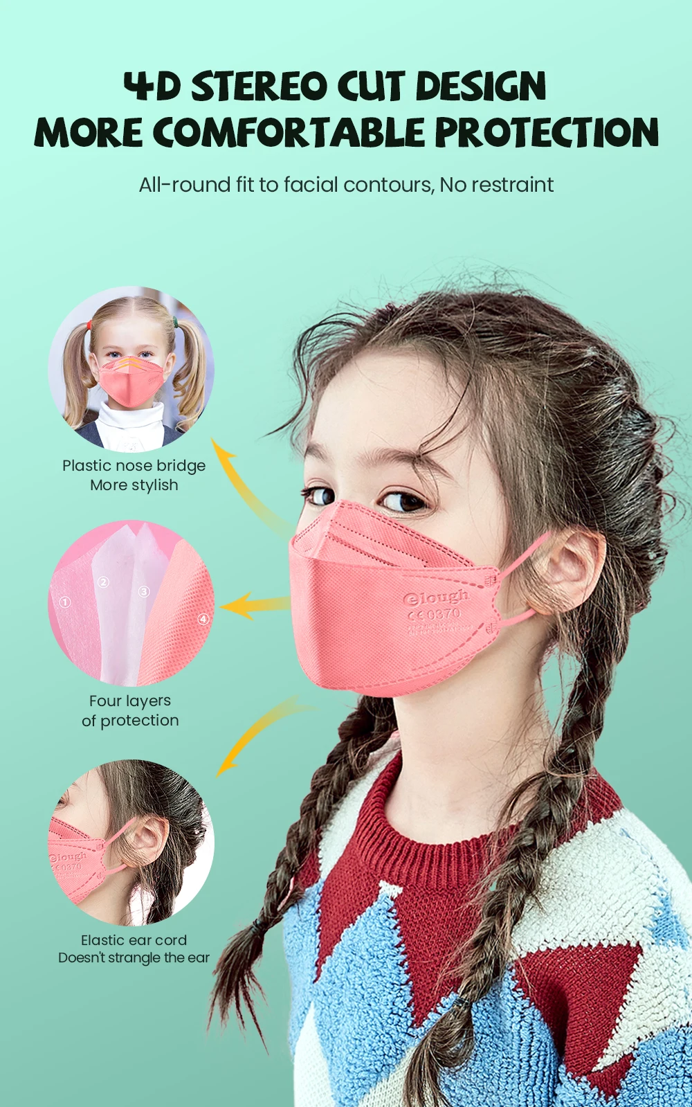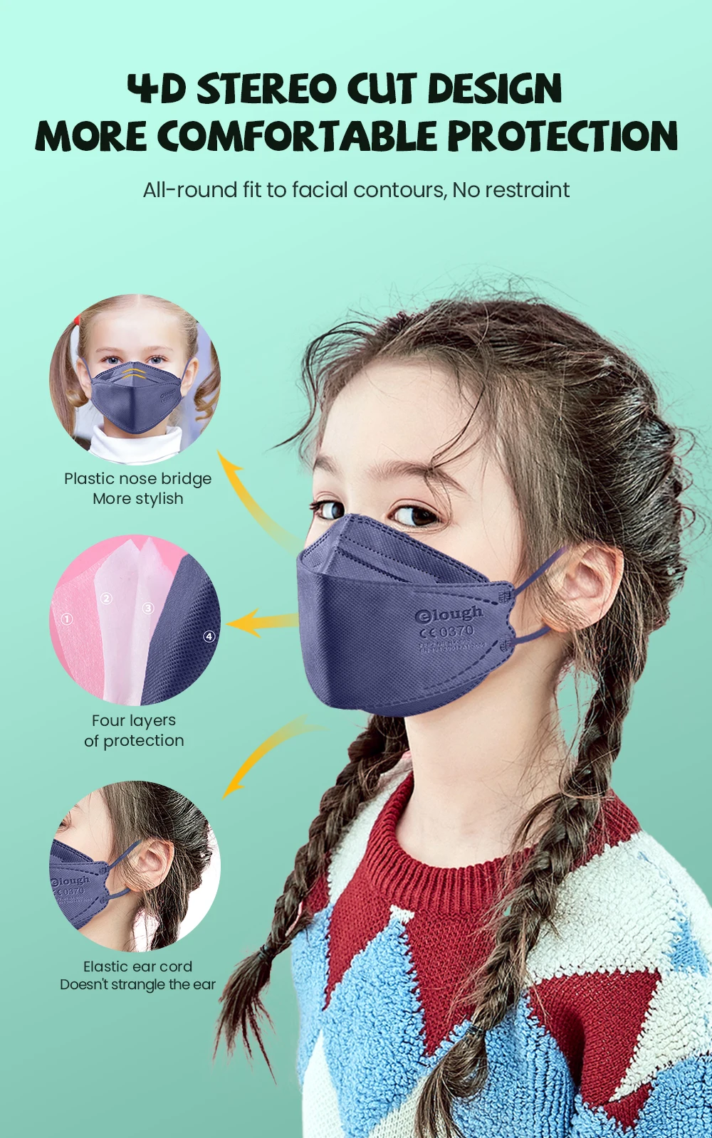 Elough Mascarillas FPP2 для детей 6-12 лет, 4-слойные Детские маски FFP2, Детская FFP 2 FFP2Mask Mascarilla KN95 Infantil