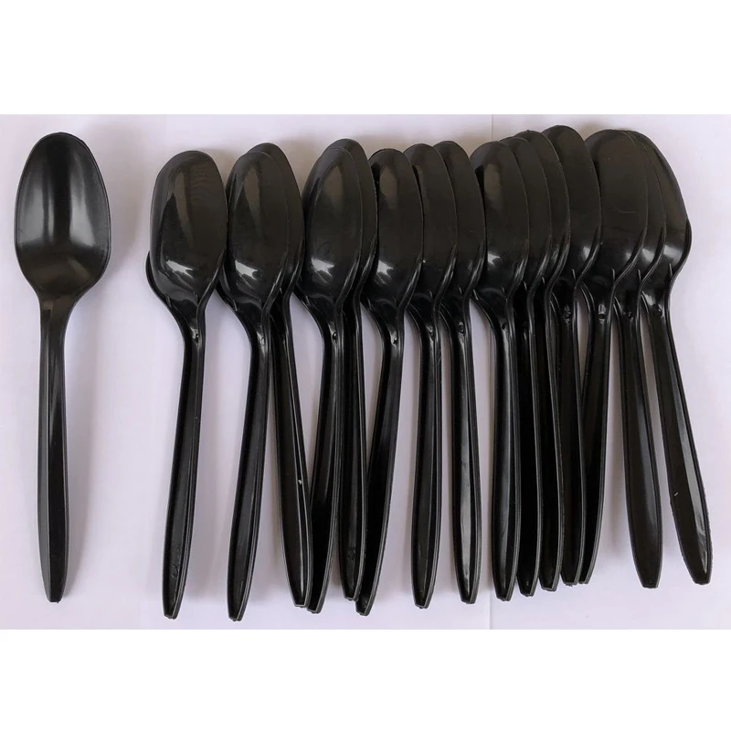 16 шт. в упаковке, черная пластиковая посуда, одноразовая ложка, по...