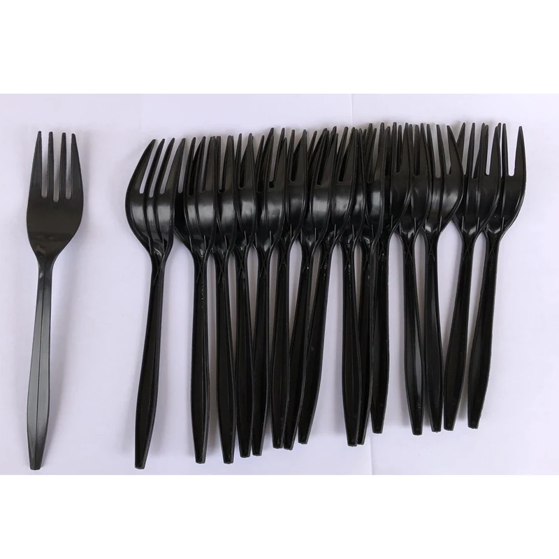 16 шт. в упаковке, черная пластиковая посуда из ПП, нож, ложка, вил...
