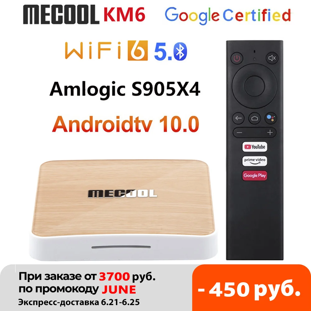 ТВ-приставка Mecool KM6 A TV Amlogic S905X4 AV1 Smart Android 10.0 4 Гб RAM 64 Гб ROM 2,4G 5G WiFi Bluetooth 4K HD телеприставка 2 Гб 16 Гб