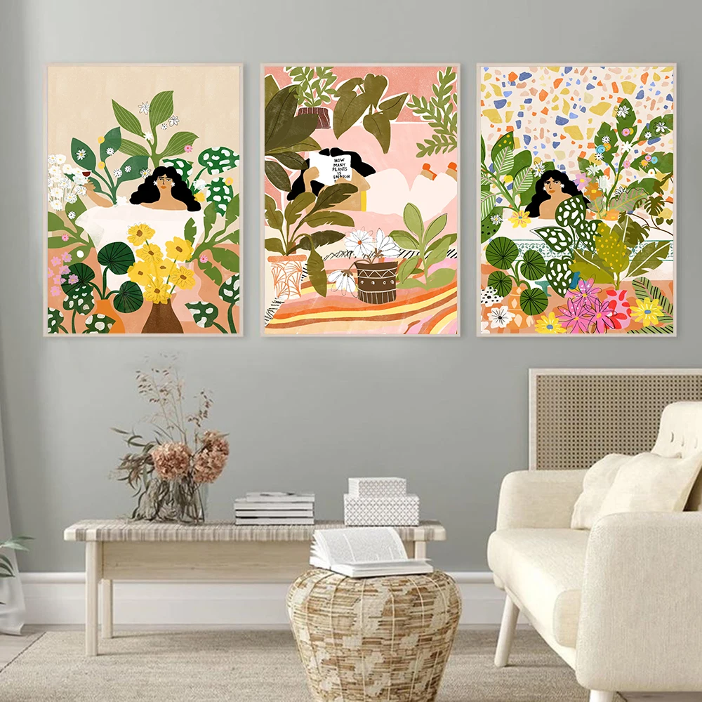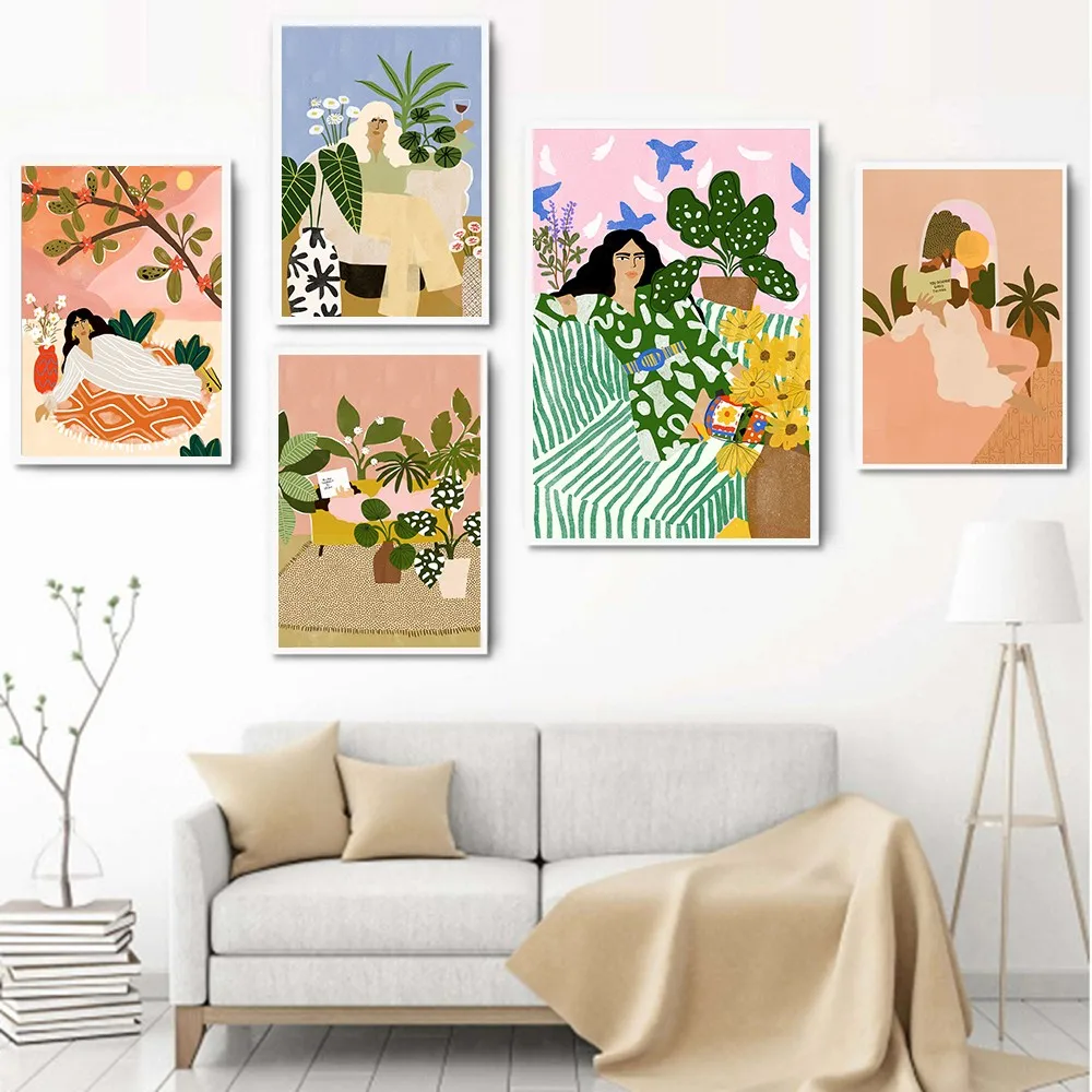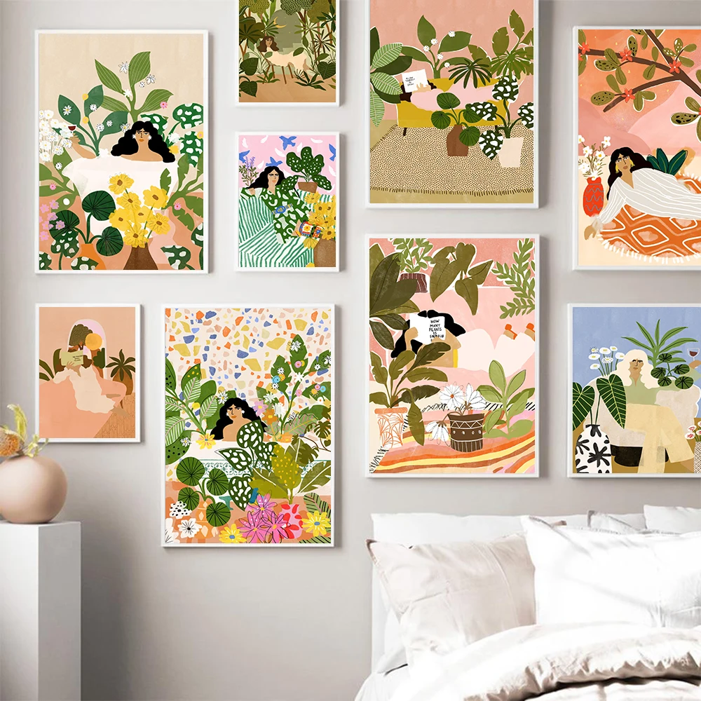 Настенные картины, модный постер с растениями для девочек, Современный домашний декор для комнаты, скандинавский абстрактный холст, настенные картины для интерьера