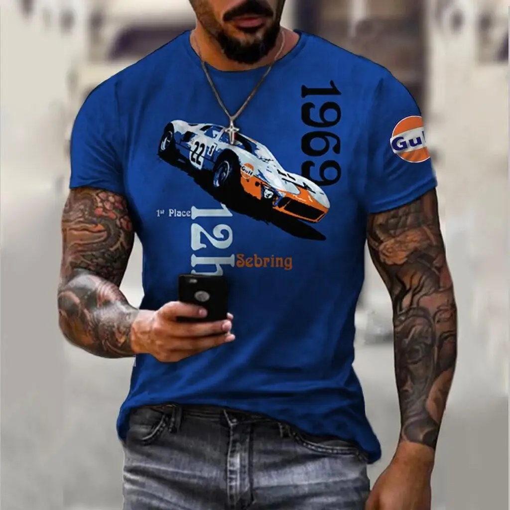 Футболка мужская оверсайз с коротким рукавом, тенниска для гонок, п...