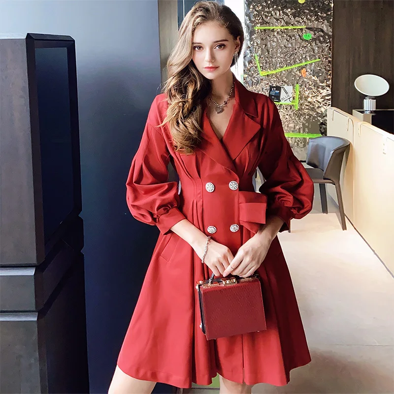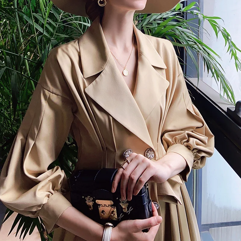 Dabuwawa Повседневный осенний женский тренчкот с разрезом элегантное пальто с рукавами-фонариками длинное пальто плиссированная ветровка для дам DO1CTC007