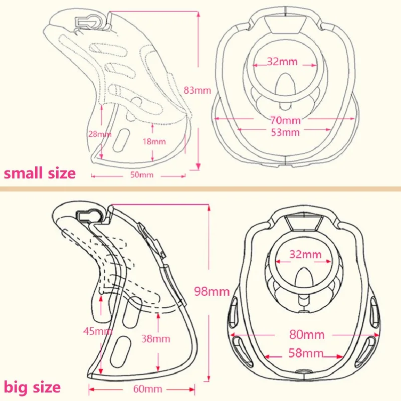 Мужское пластиковое устройство целомудрия с 4 кольцами.Устройство изготовлено из высококачественного пластика. Безвреден и безопасен для долгого использования.Включает 1 клетку, 4 кольца, 1 пластиковый штифт, 1 замок (с ключами), 5 пластиковых замков.Кольцо имеет 4 размера: 1,46 дюйма (37 мм), 1,57 дюйма (40 мм), 1,77 дюйма (45 мм), 1,97 дюйма (50 мм). Все 4 кольца входят в комплект.Длина маленькой клетки составляет около 1,97 дюйма (50 мм), ширина около 2,76 дюйма (70 мм), высота около 3,27 дюйма (83 мм).Длина Большой клетки составляет около 2,36 дюйма (60 мм), ширина около 3,15 дюйма (80 мм), высота около 3,86 дюйма (98 мм).Внутренний диаметр клетки составляет около 1,26 дюйма (32 мм).Эти размеры могут иметь небольшую погрешность, потому что они измеряются вручную.Вес составляет около 230 граммов.