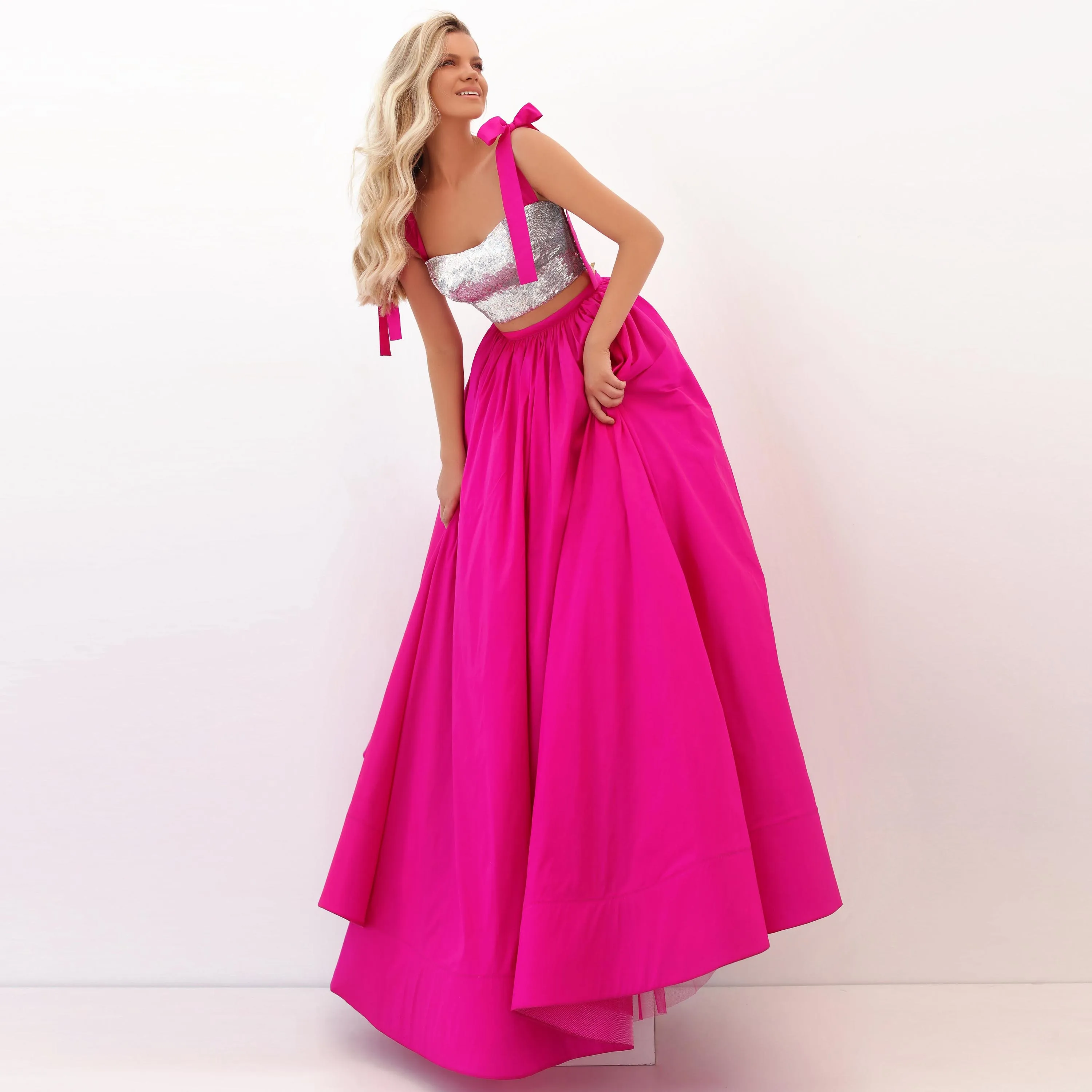 Юбка из двух предметов для выпускного вечера, фиолетово-красные атласные юбки, вечерние юбки до пола, гладкая длинная шифоновая юбка с эластичной высокой талией