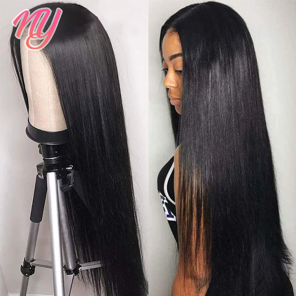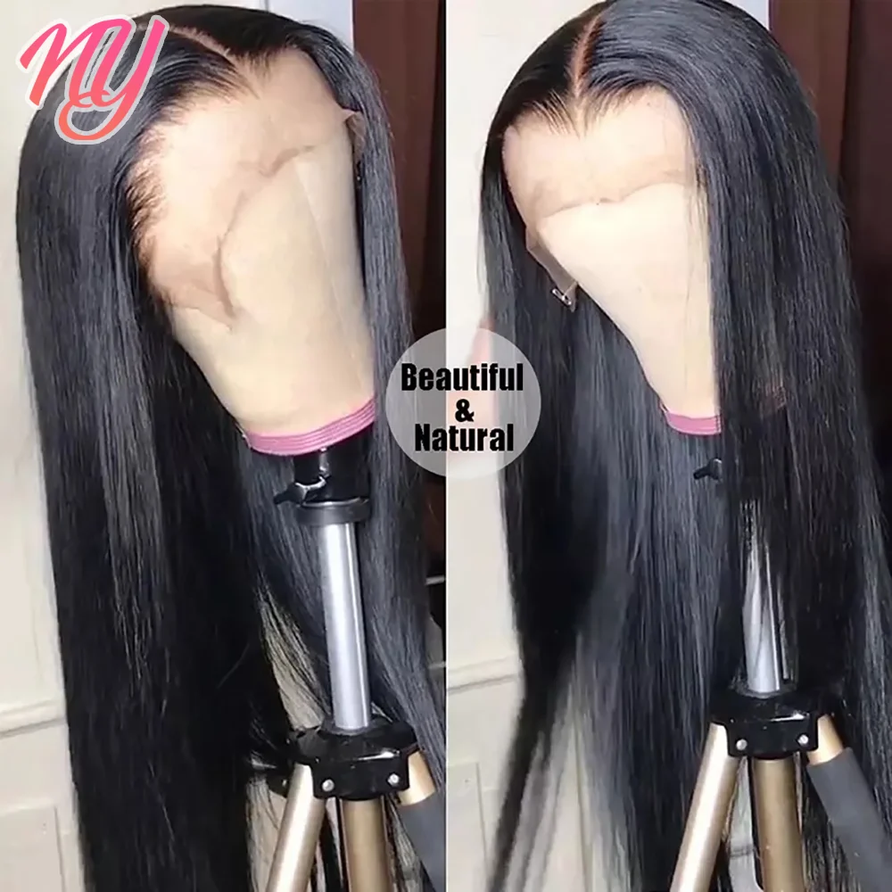 Парик NY на сетке спереди, черные человеческие волосы, бразильский парик естественного цвета, парики без повреждений, прямые человеческие волосы, гладкие парики 13x4, предварительно выщипанные