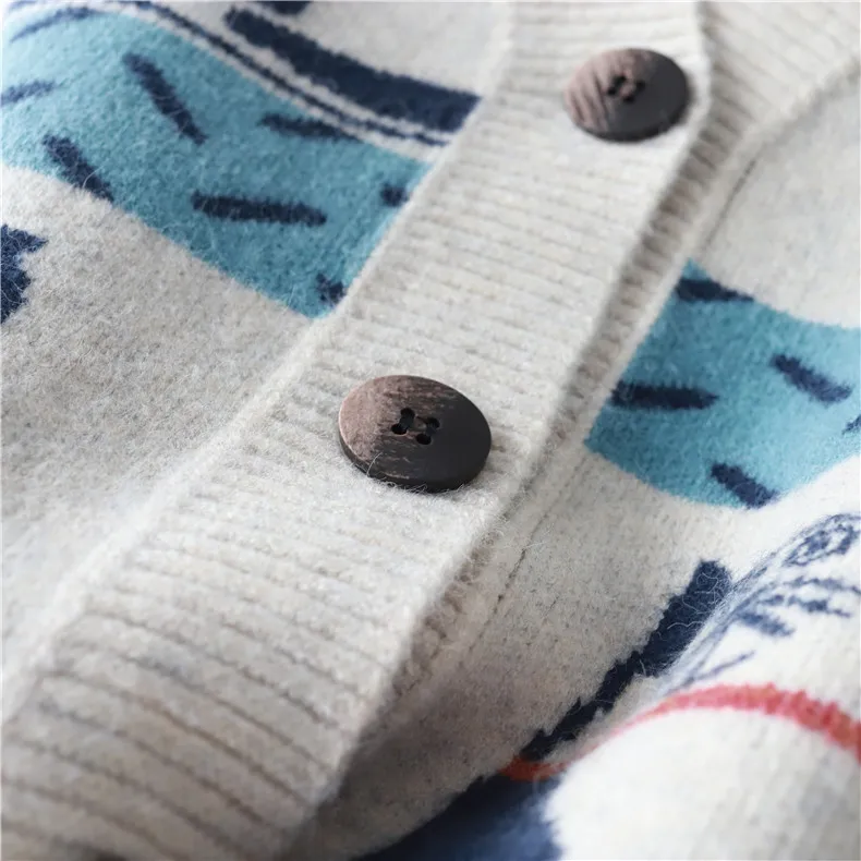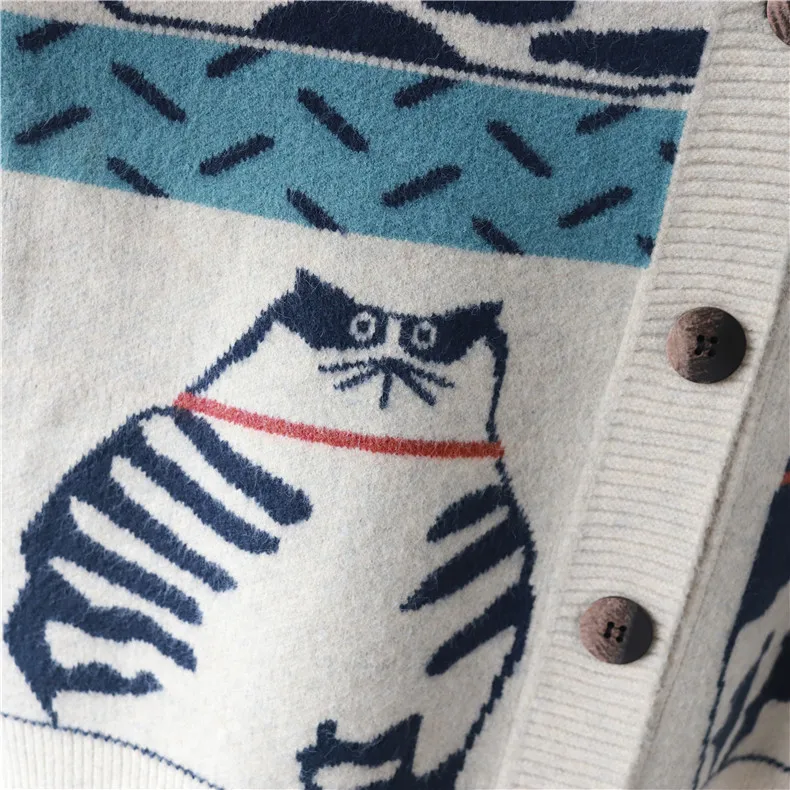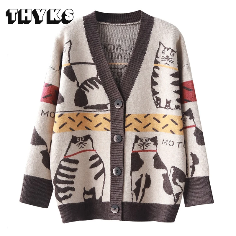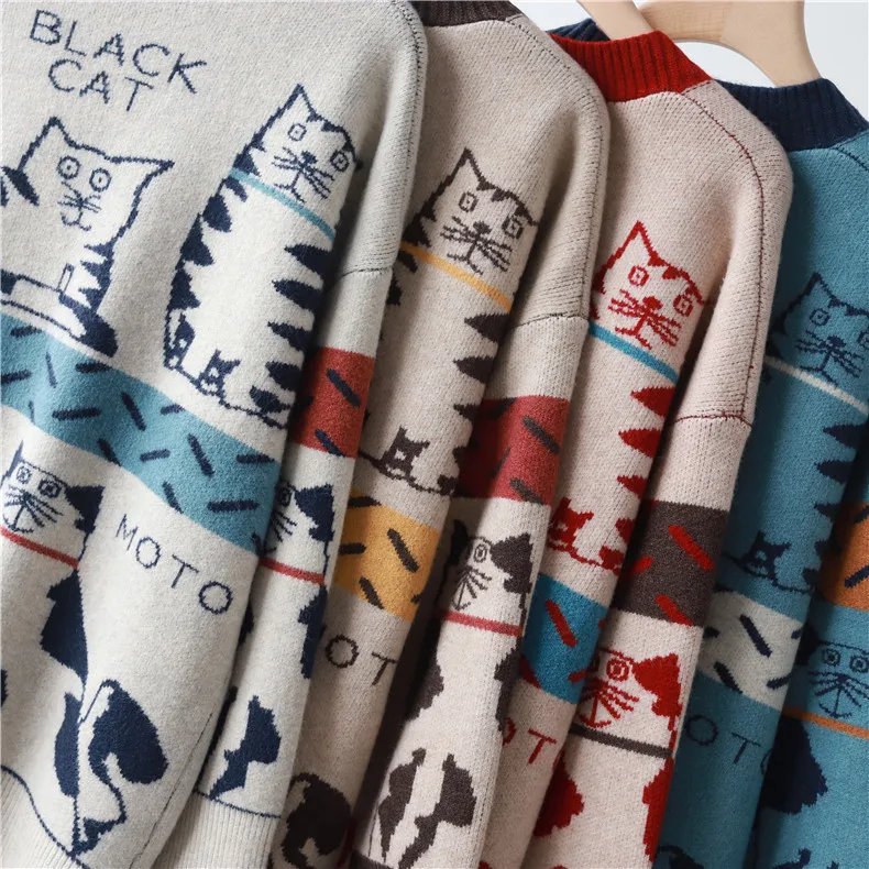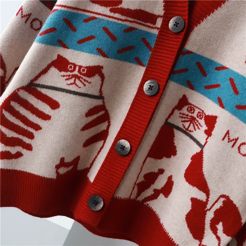 Свободный свитер, кардиган, Женские Ретро вязаные свитера с мультяшным рисунком кота, весенне-осенние хлопковые Корейские вязаные свитера, пальто для женщин