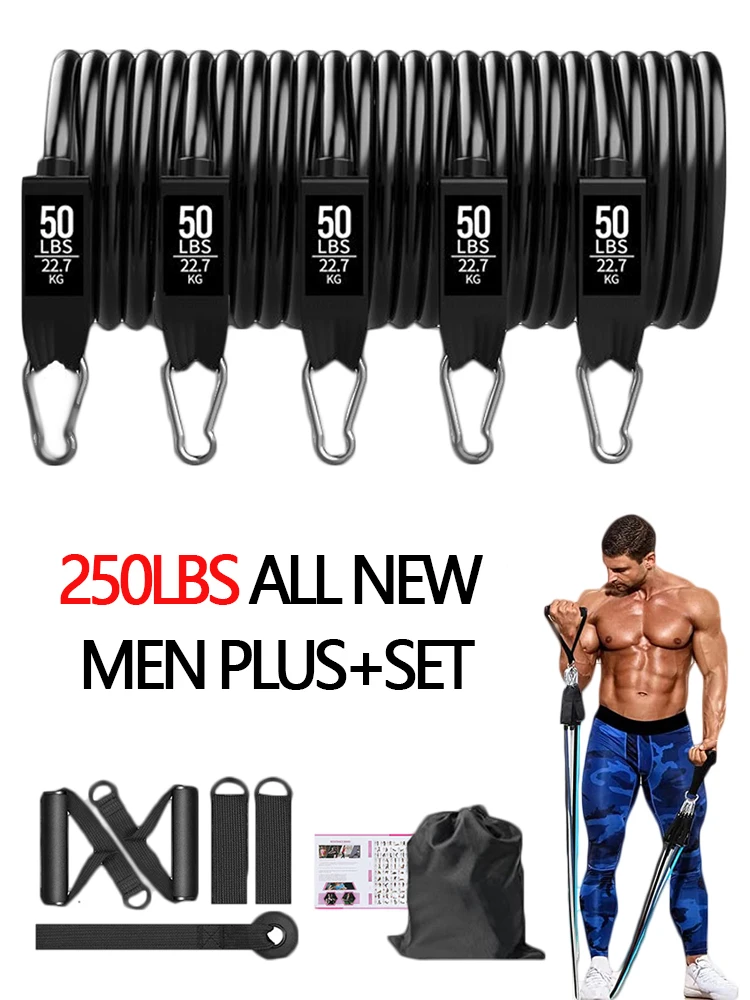 Спортивные ленты, комплект из 5 трубок с дверными анкерными ручками, 250 фунтов, ремни на лодыжку для мышц, домашние тренировки