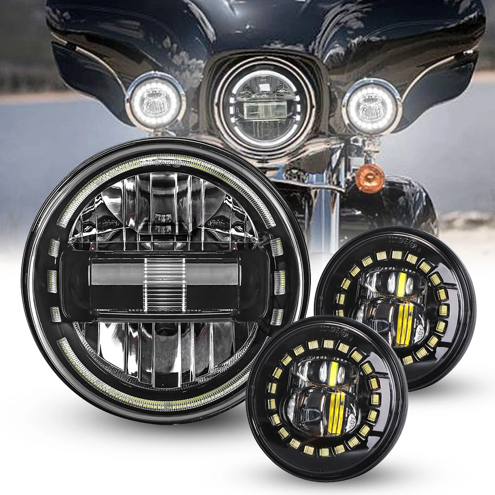 Мото набор для Harley Davidson Classic Street Glide Fat Boy дорожный король наследие Softail 7-дюймовые светодиодные фары + 4,5 дюймов светодиодные противотуманные фары