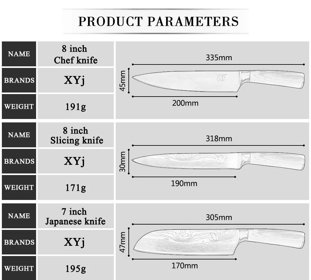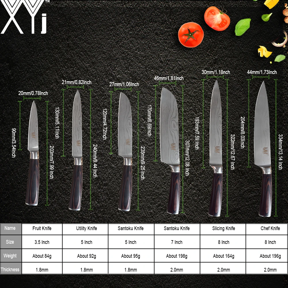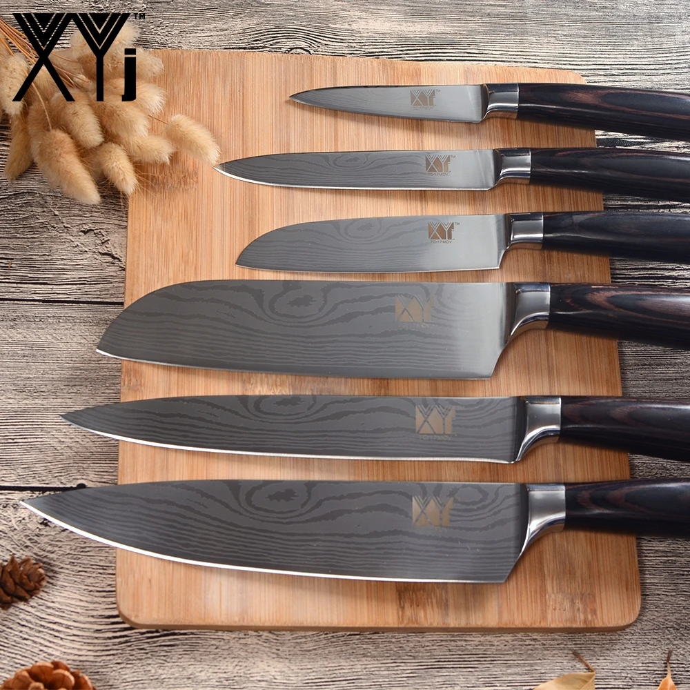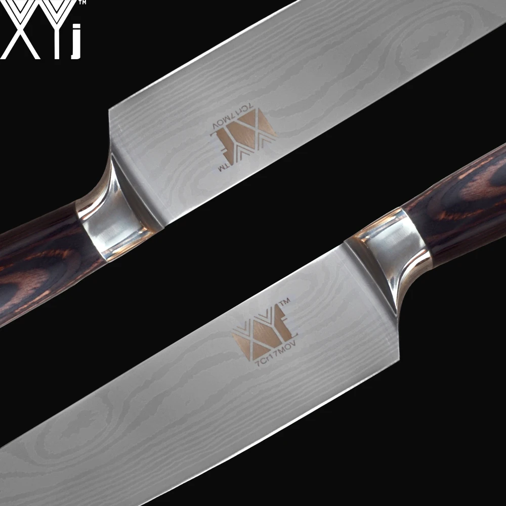 Набор кухонных ножей шеф-повара, острые лезвия из нержавеющей стали с Дамасским узором, ручка из дерева и венчиков, нож сантоку для нарезания ломтиками