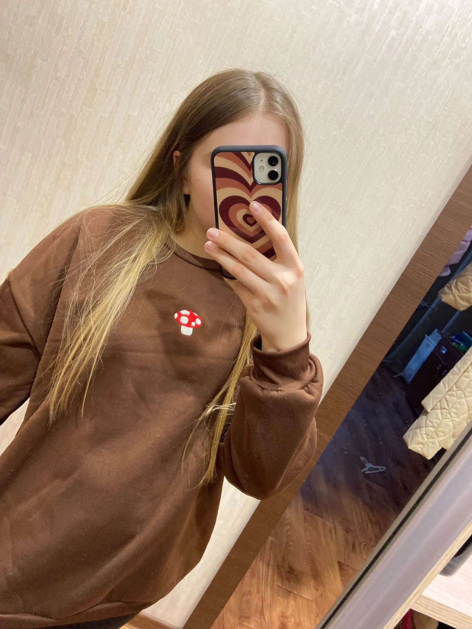 Y2k эстетика гриб вышивка негабаритных кофты винтажная коричневая ф...