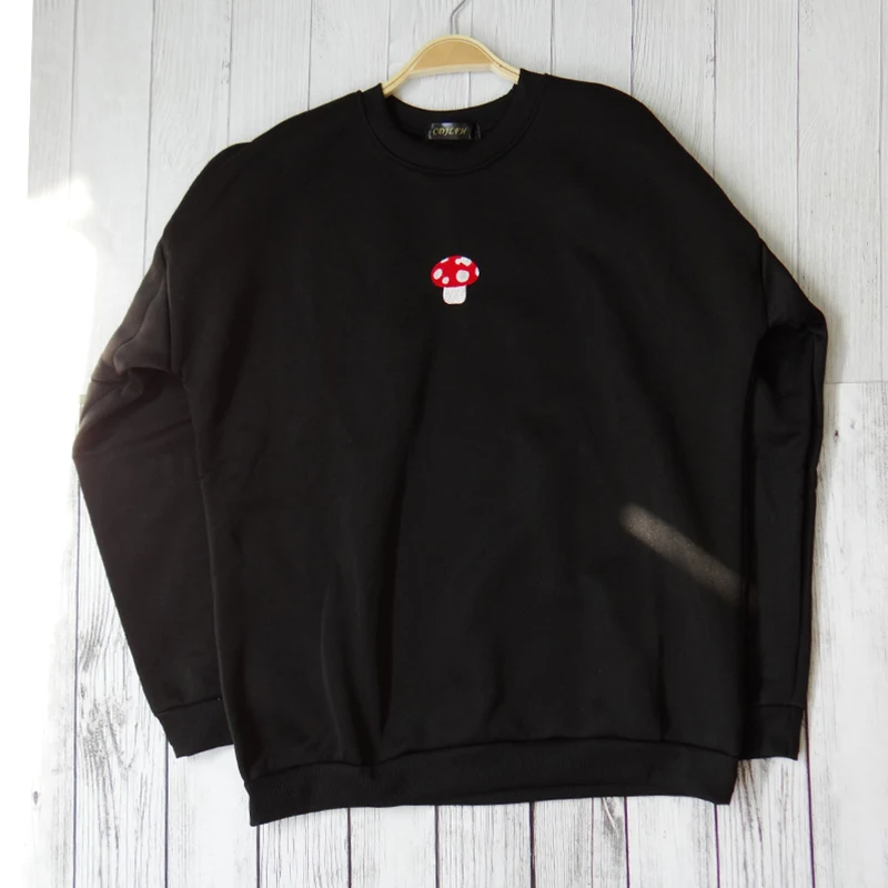 Женский свитшот с длинным рукавом, с вышивкой в виде грибов