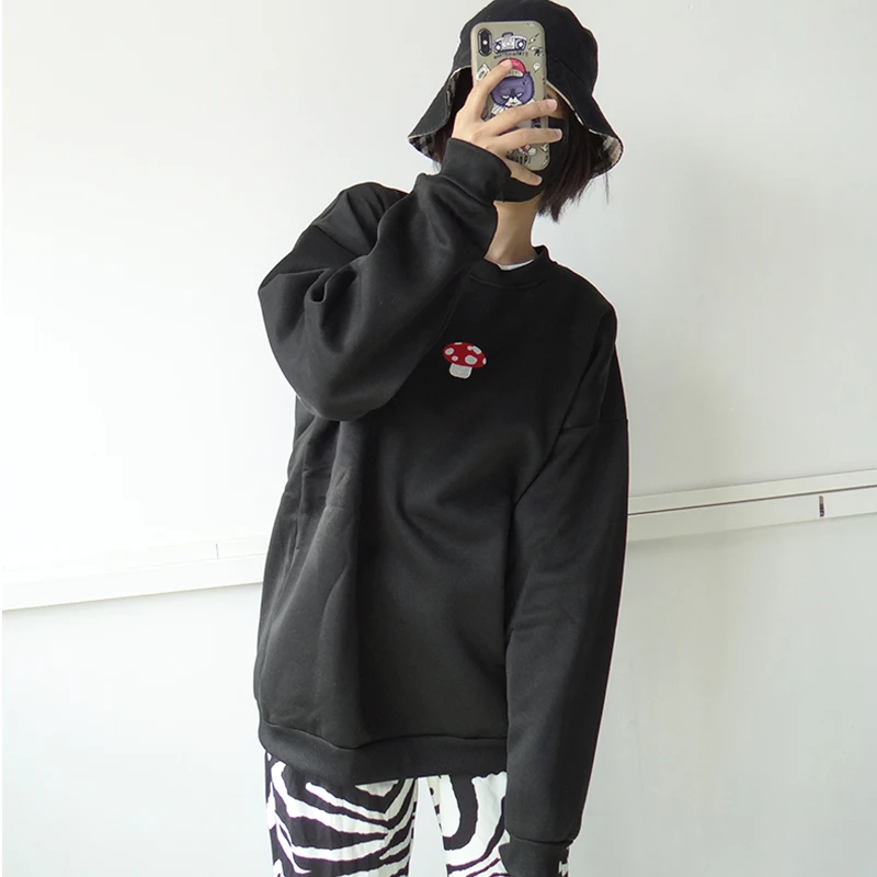 Женский свитшот с вышивкой в виде грибов Y2K, Свободный пуловер бол...
