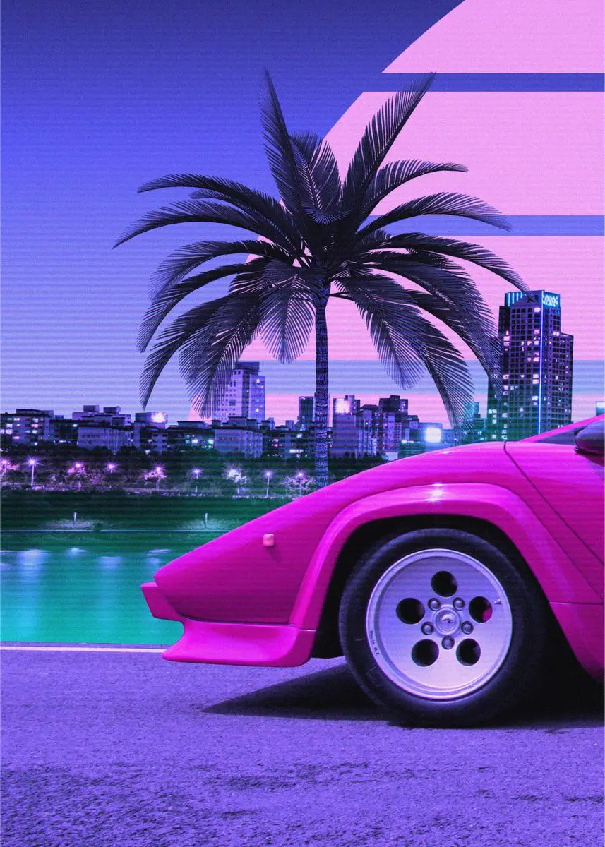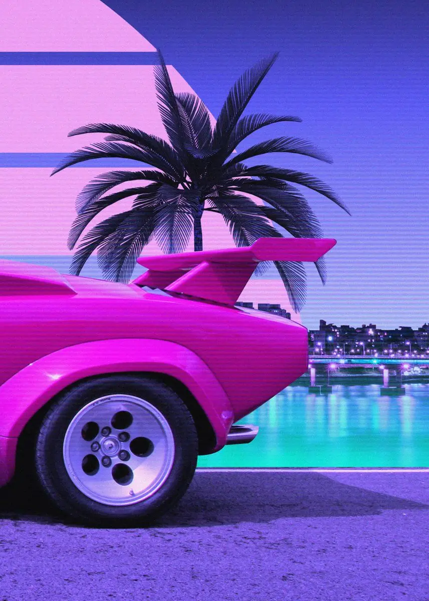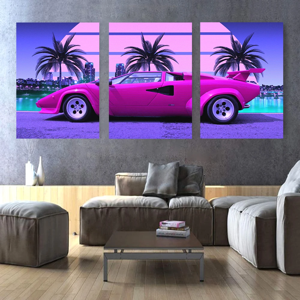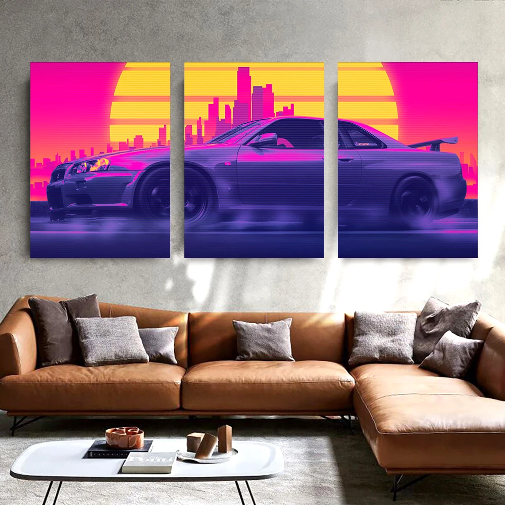 Постер ретро-волны Countach R34, Ночной городской автомобиль в стиле вапорайзера, креативная роспись, Скандинавская настенная роспись, домашний декор, кавайный холст для декора комнаты