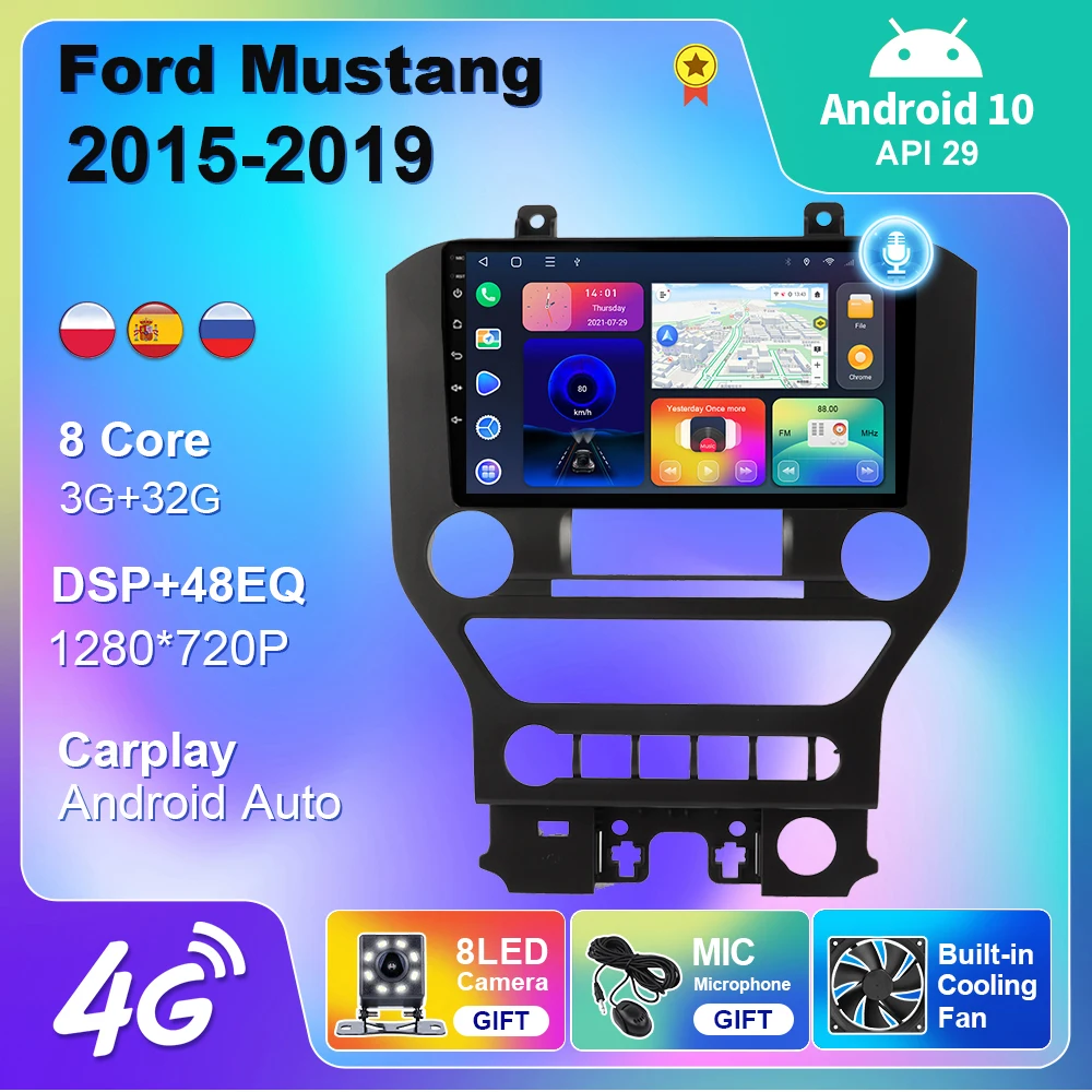 Автомагнитола, 9 дюймов, Android 10, для Ford Mustang 2015-2019, 2 din, GPS-навигация, 4G, Wi-Fi, BT, Carplay, стерео, без DVD-плеера