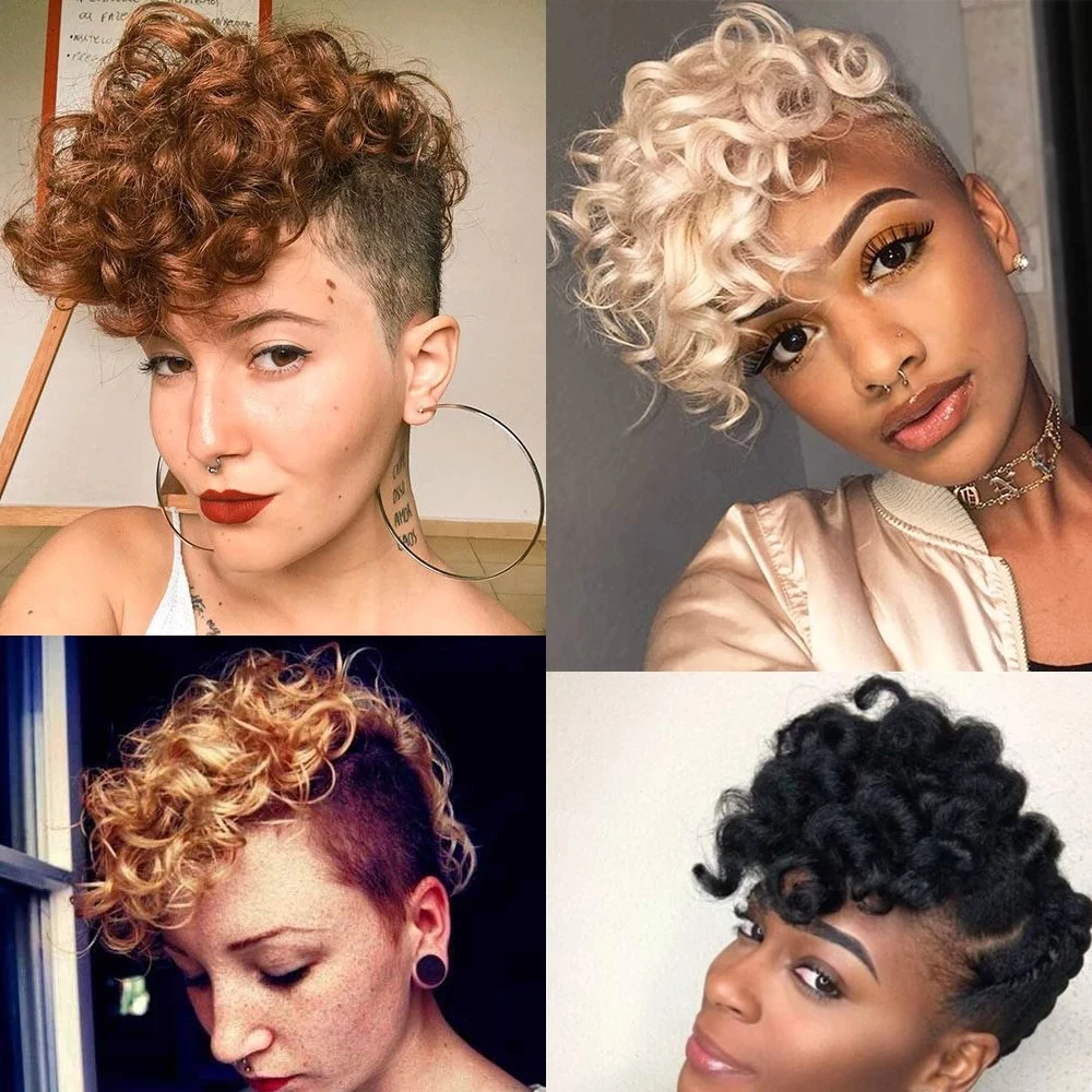 Женская одежда, Короткие вьющиеся волосы и синтетические пучки с че...