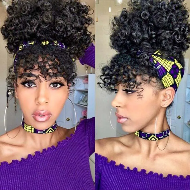 Афро-пуховка с кулиской хвост с челкой для черных женщин афро высок...