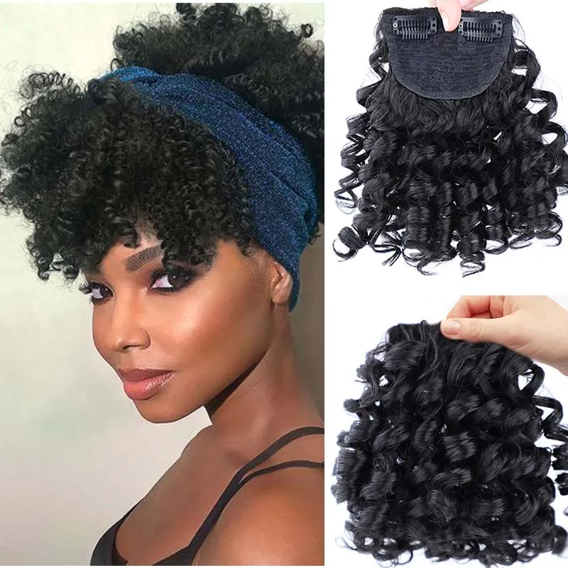 Искусственная кудрявая бахрома XQ, искусственные шиньоны из натурального черного термостойкого волокна, синтетические шиньоны для женщин