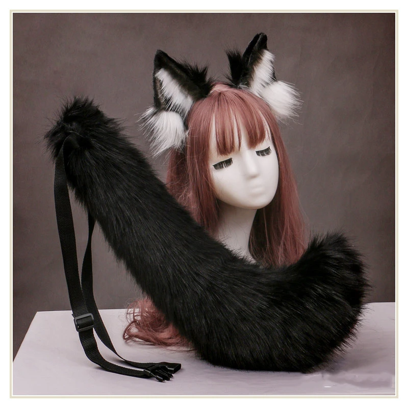 Головной убор с пушистым хвостом для Хэллоуина, аксессуары для косплея, Черная Женская повязка на голову с кроличьими ушками из аниме, лиса, Лолита, кавайная повязка для волос