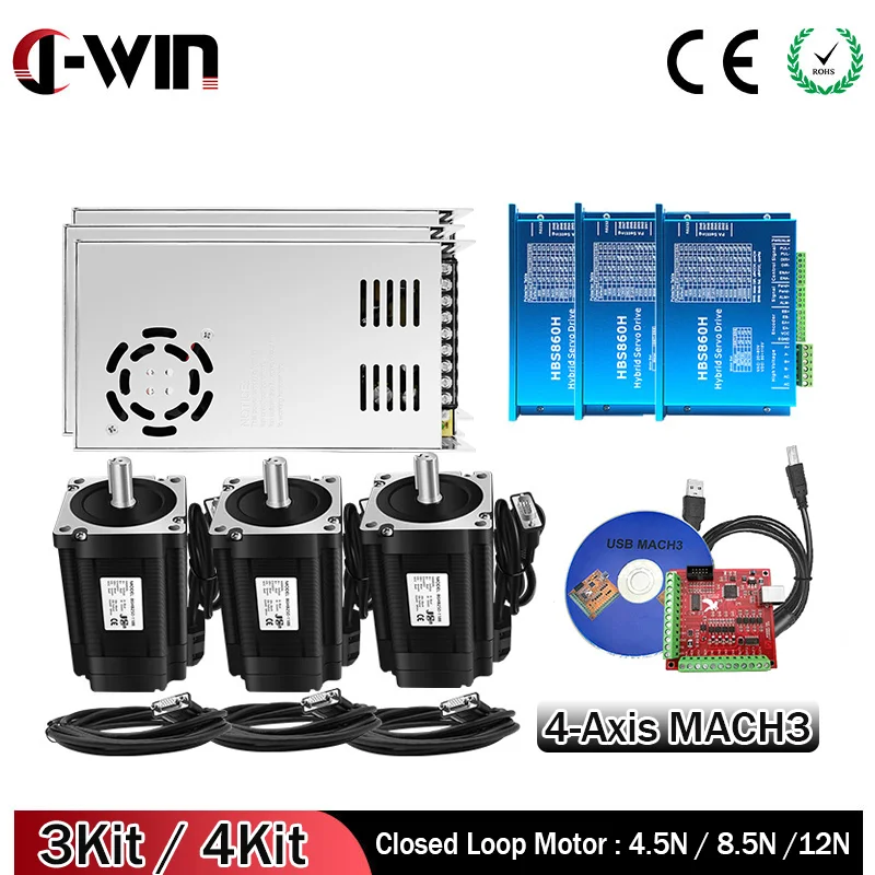 Упаковка продукта включает 1:3.Комплект3 * NEMA34 мотор с замкнутым контуром3*3 м кодовая линия3 * HBS860H или HBS86H драйвер3*400 Вт 60 в источник питания1*4 оси MACH3 интерфейсная платаФлуоресцентный