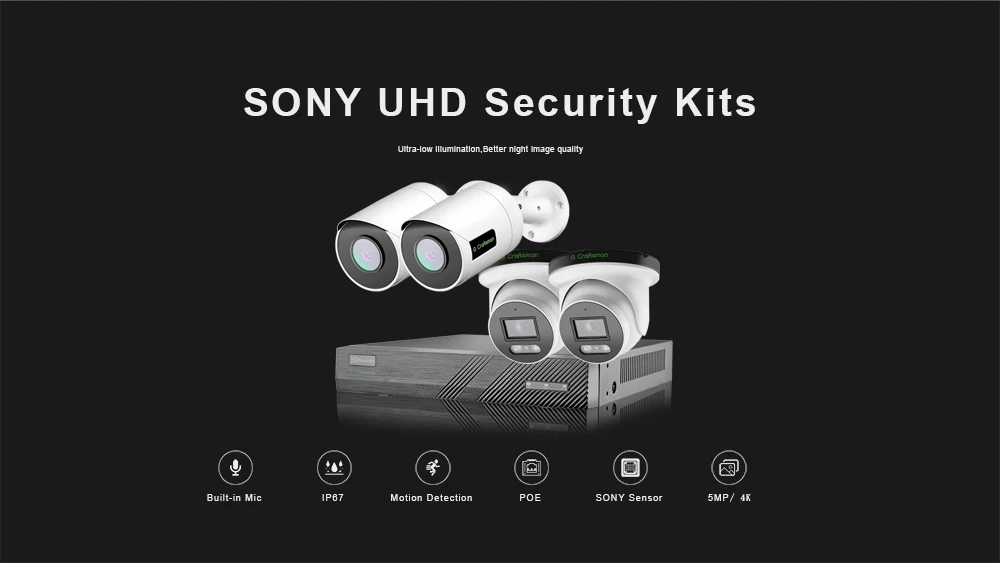 Система видеонаблюдения, 4-канальная водонепроницаемая купольная IP-камера Sony H.265, 4K POE, 5 МП, 2 шт. пули и 2 шт. звука