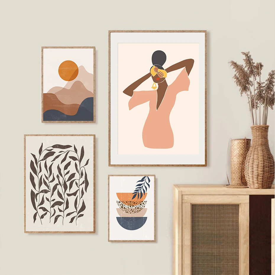Пейзаж, растительный геометрический постер, модная женская Настенная картина на холсте, минималистичный принт в стиле бохо, украшение для дома, гостиной